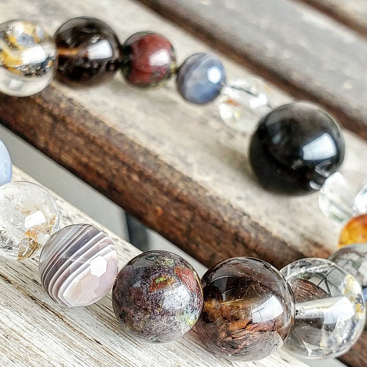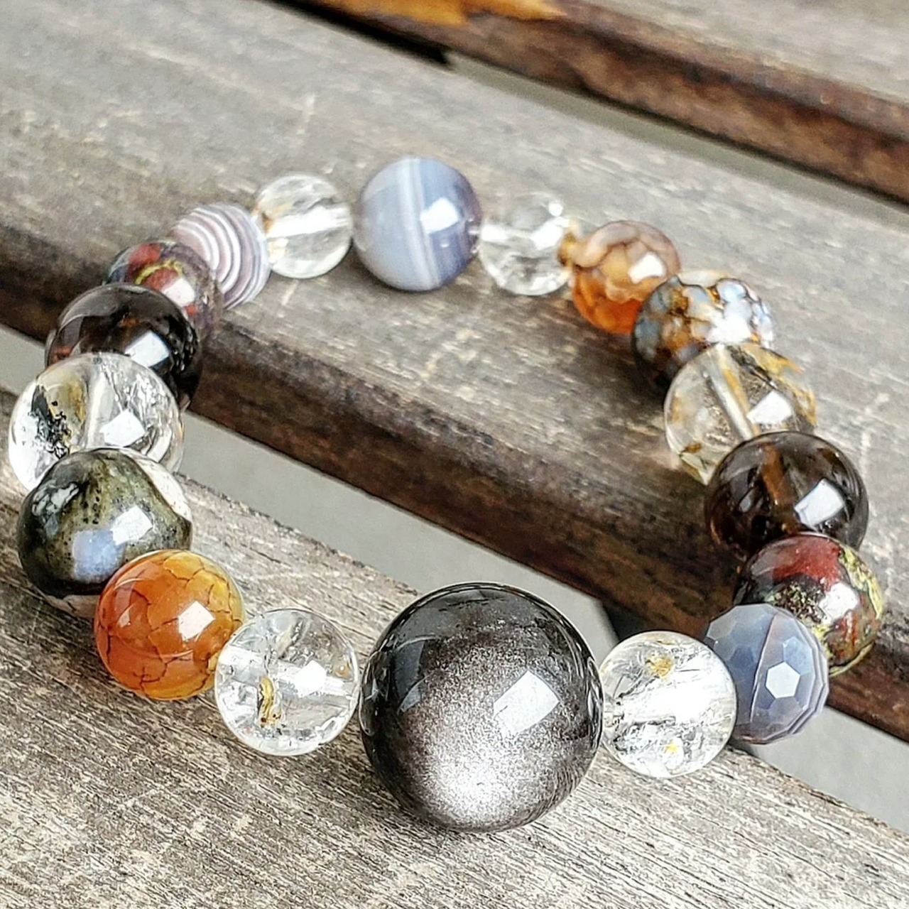 シルバーオブシディアン&ヒマラヤエレスチャルクォーツ&ドラゴンアゲート&ケセラストーン&ブラックオーラライト23&ドラゴンブラッドジャスパー&ボツワナアゲート