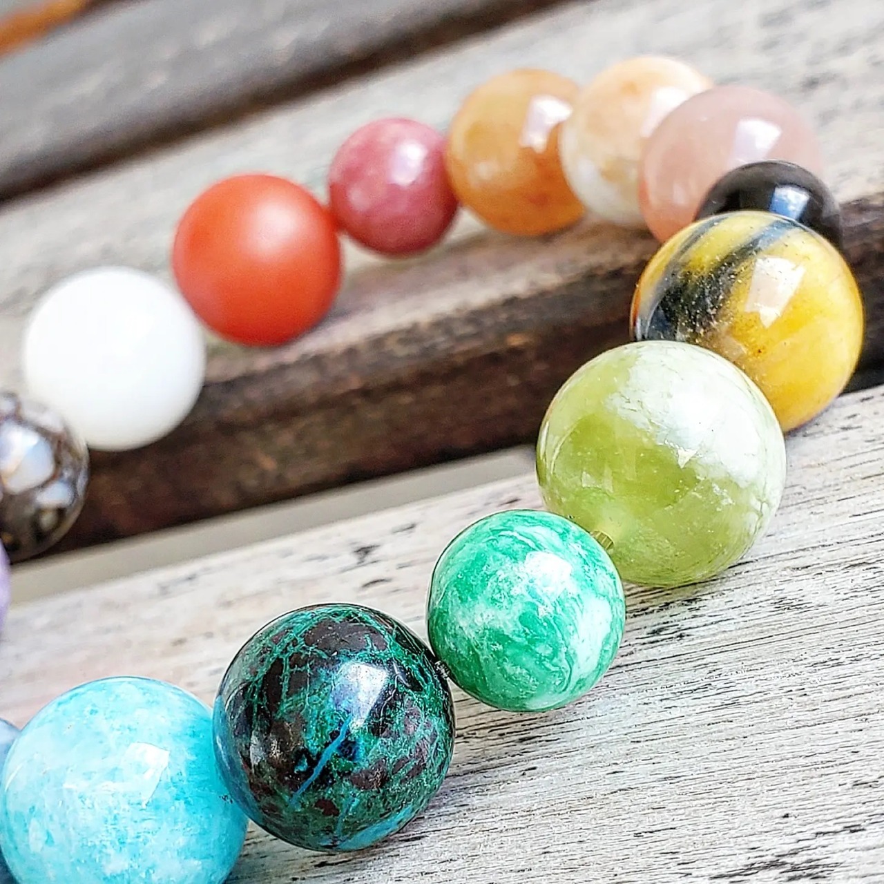17種類のすべて異なる天然石で組んだブレスレットです