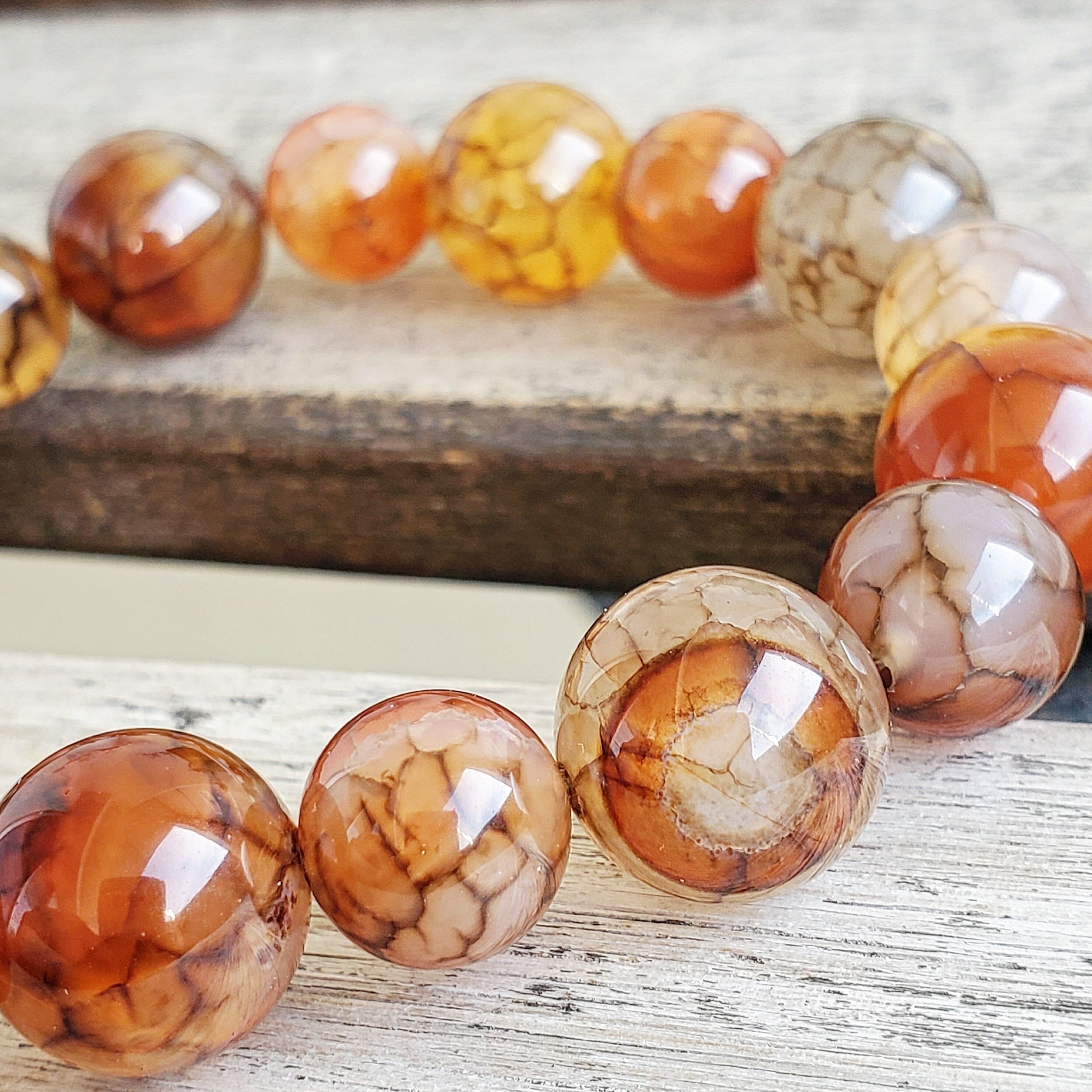 約12㎜珠と約10㎜珠のドラゴンアゲートを交互に組んだブレスレットです