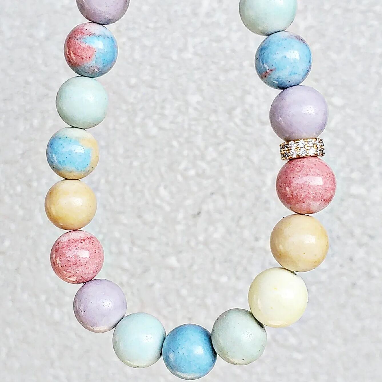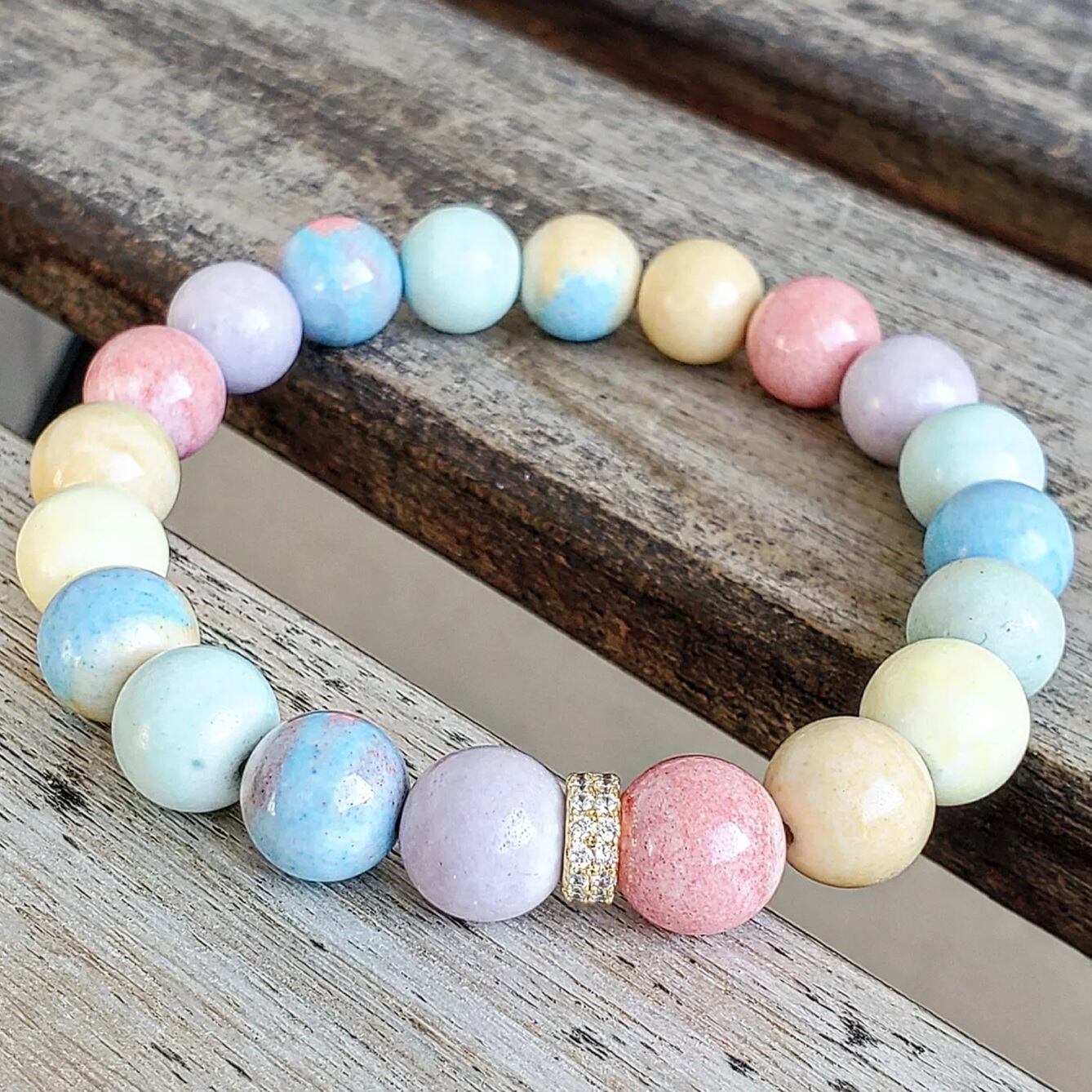 こちらは天然石ではなく、陶器で作られたパステルカラーのビーズになります