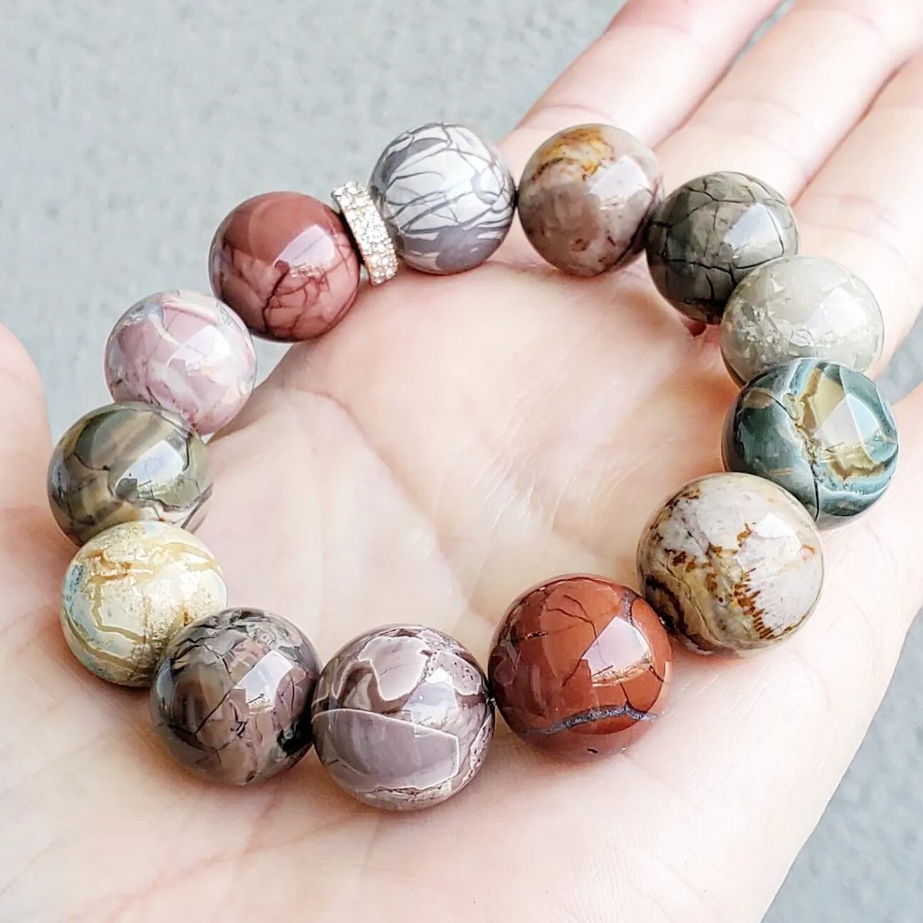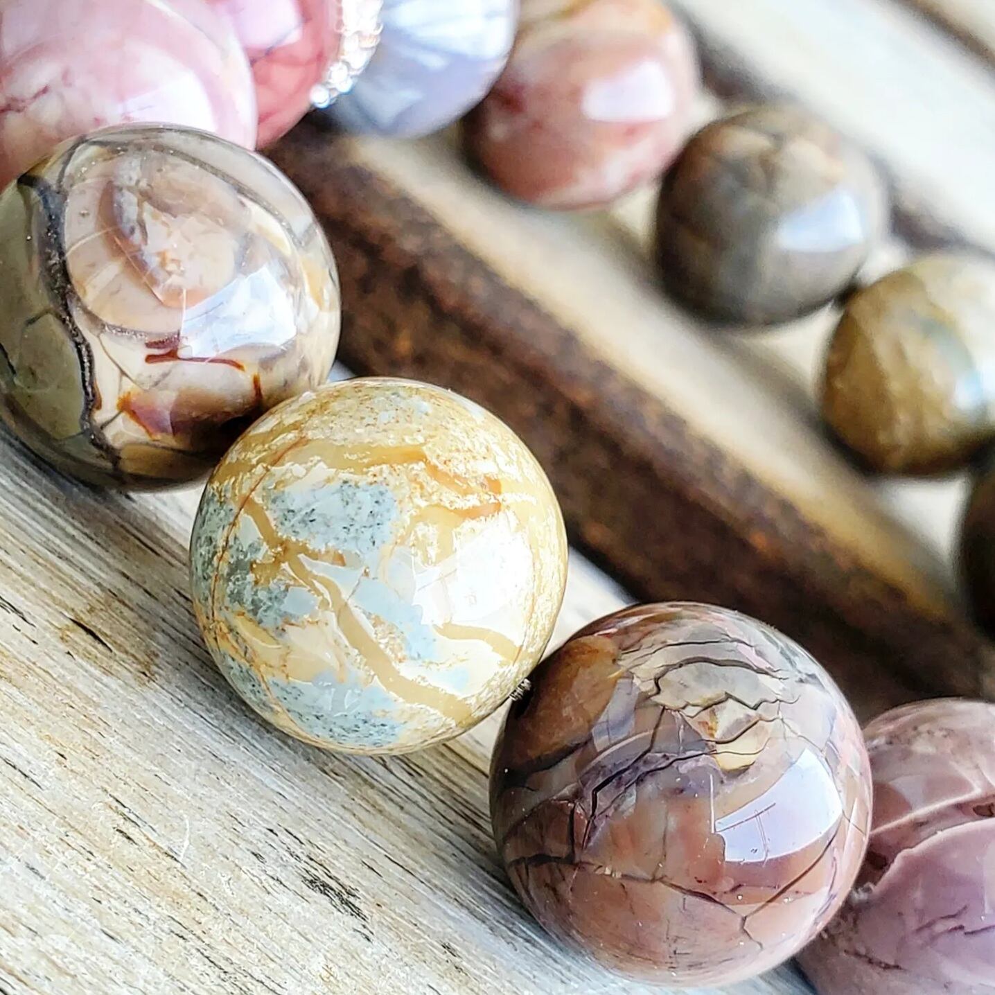 レトロカラーなアラシャンアゲートで組んだブレスレットです
