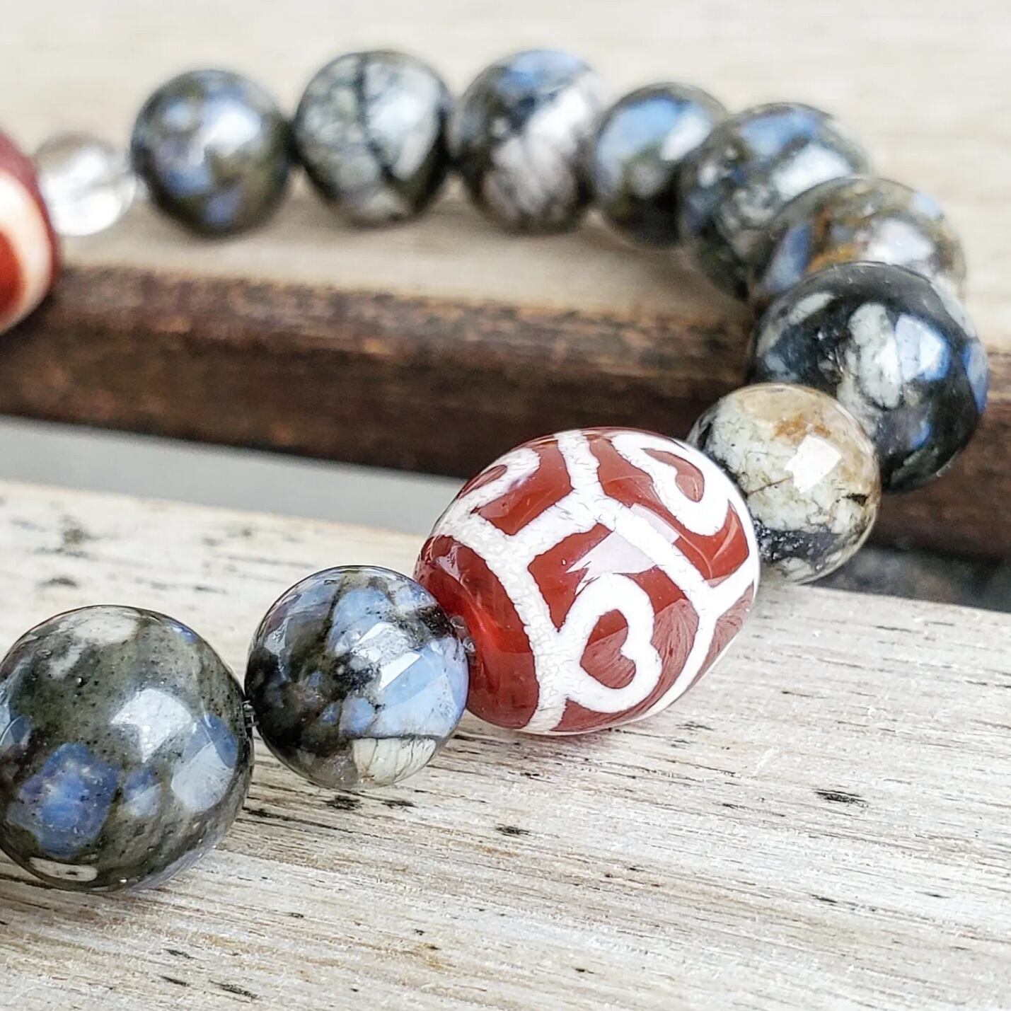 天珠とは、古代からチベットに伝わる聖なるお守りで、災厄・厄難を逃れ、あらゆる幸運・財運を招くと信じられています