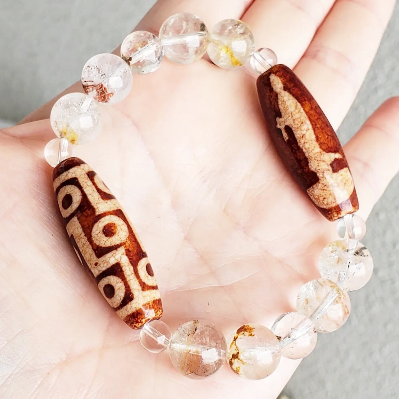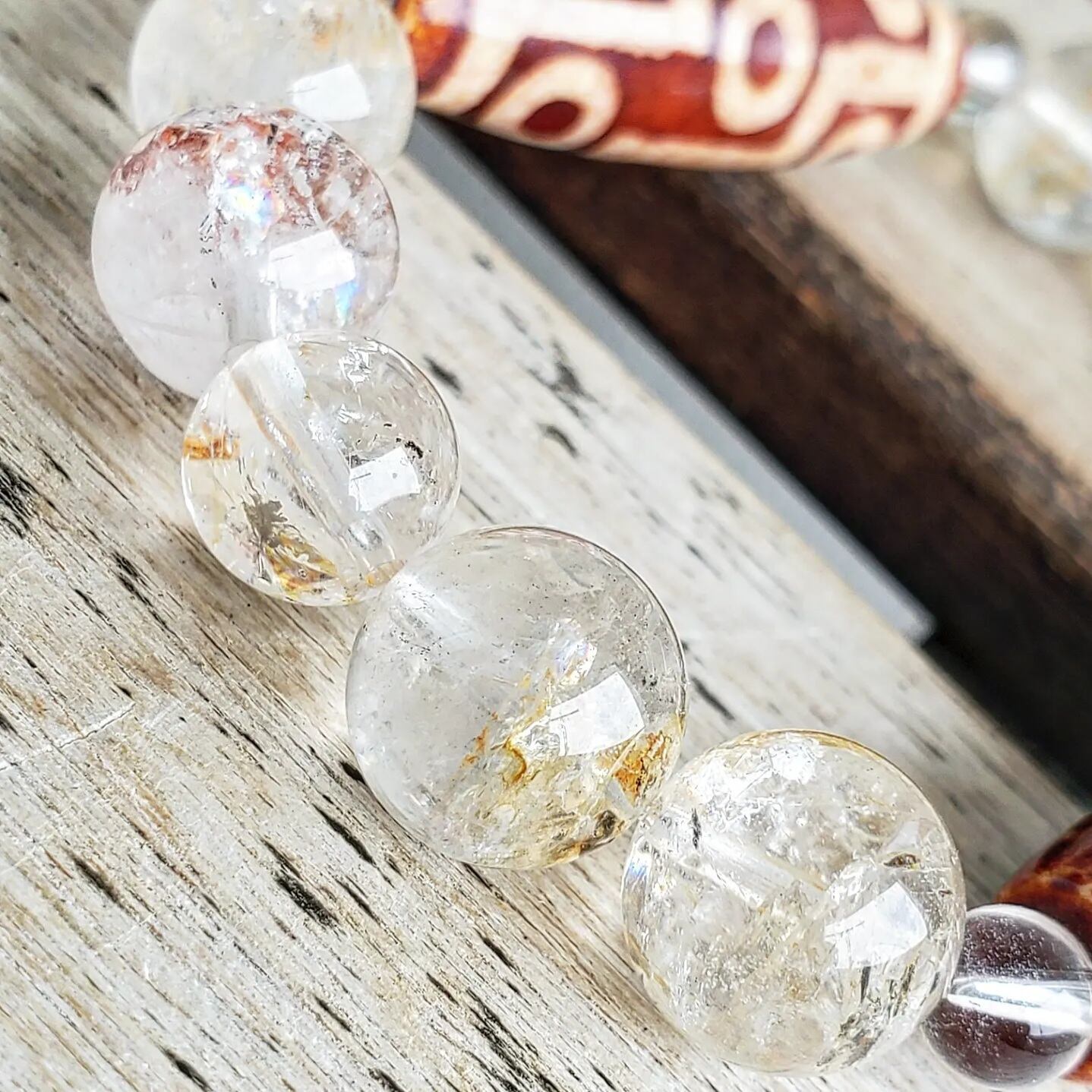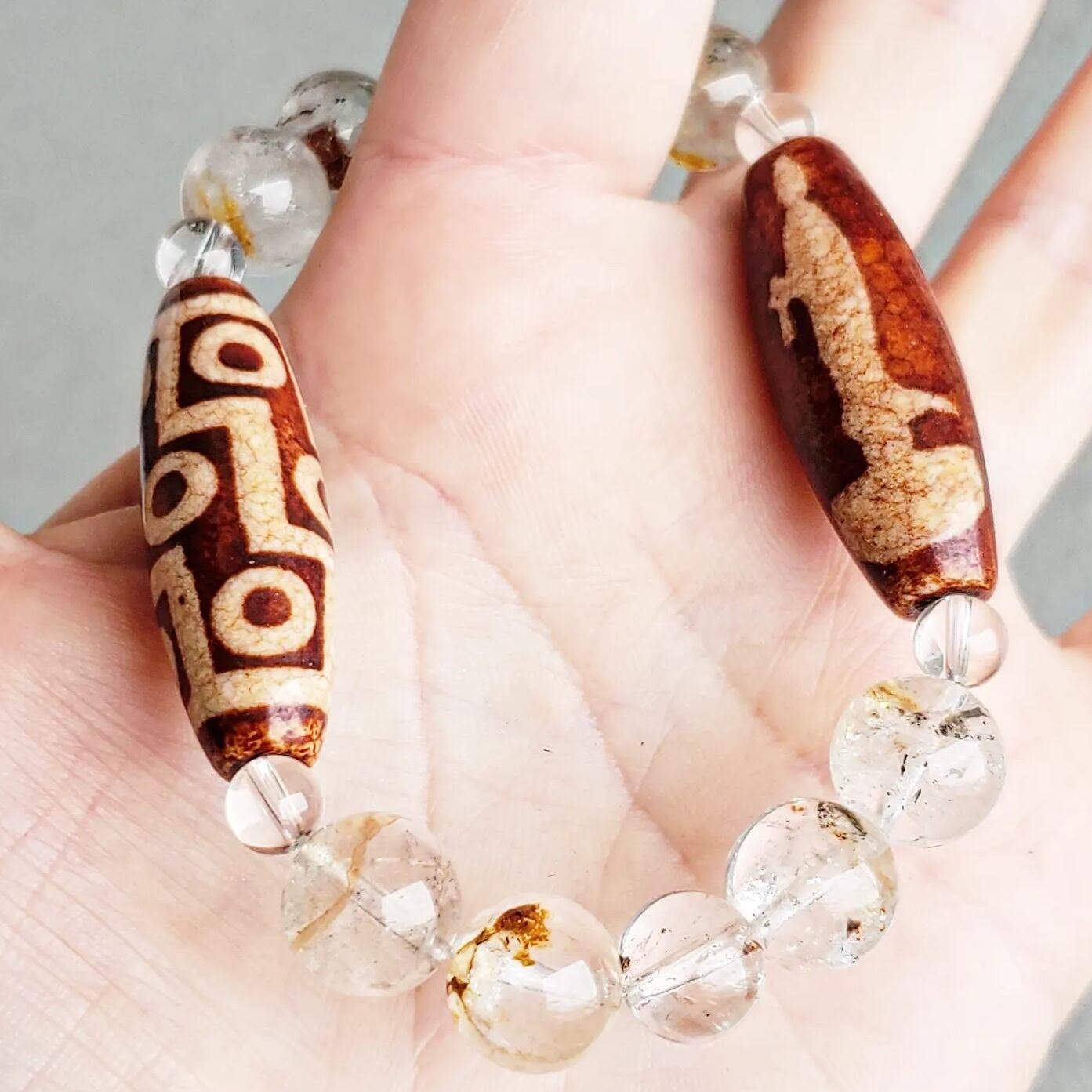〈大玉〉双観音(そうかんのん)天珠 & 九眼(くがん)天珠 & ヒマラヤエレスチャルクォーツ & 水晶