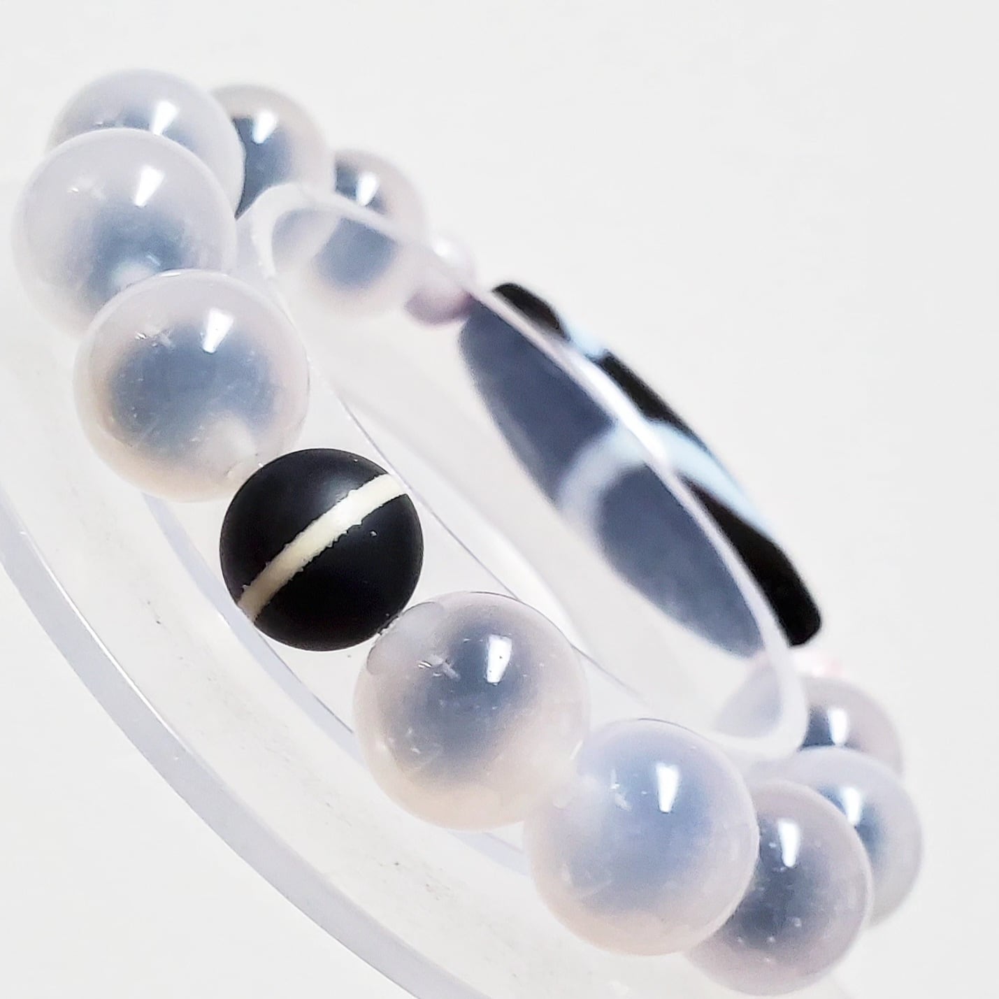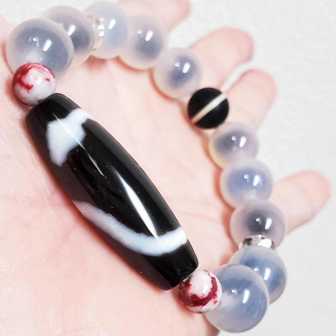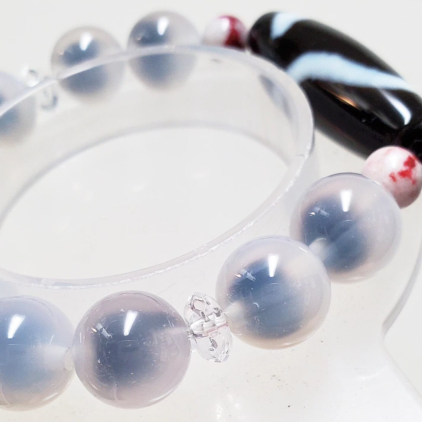 〈大玉〉白蛇(しろへび/はくじゃ)天珠 & 一線薬師天珠 & ゴビアゲート(タピオカアゲート) & シナバーインクォーツ&ボタンカット水晶
