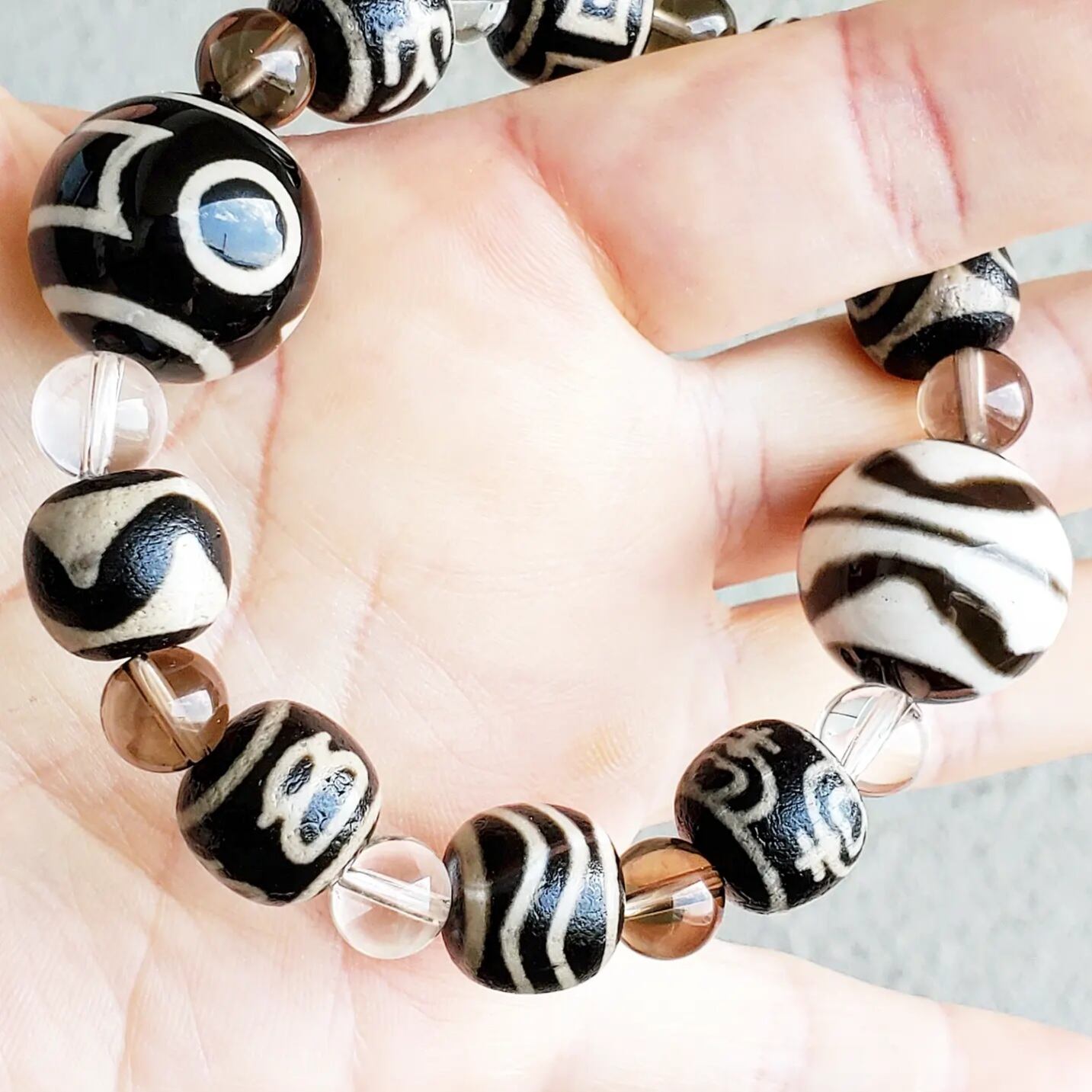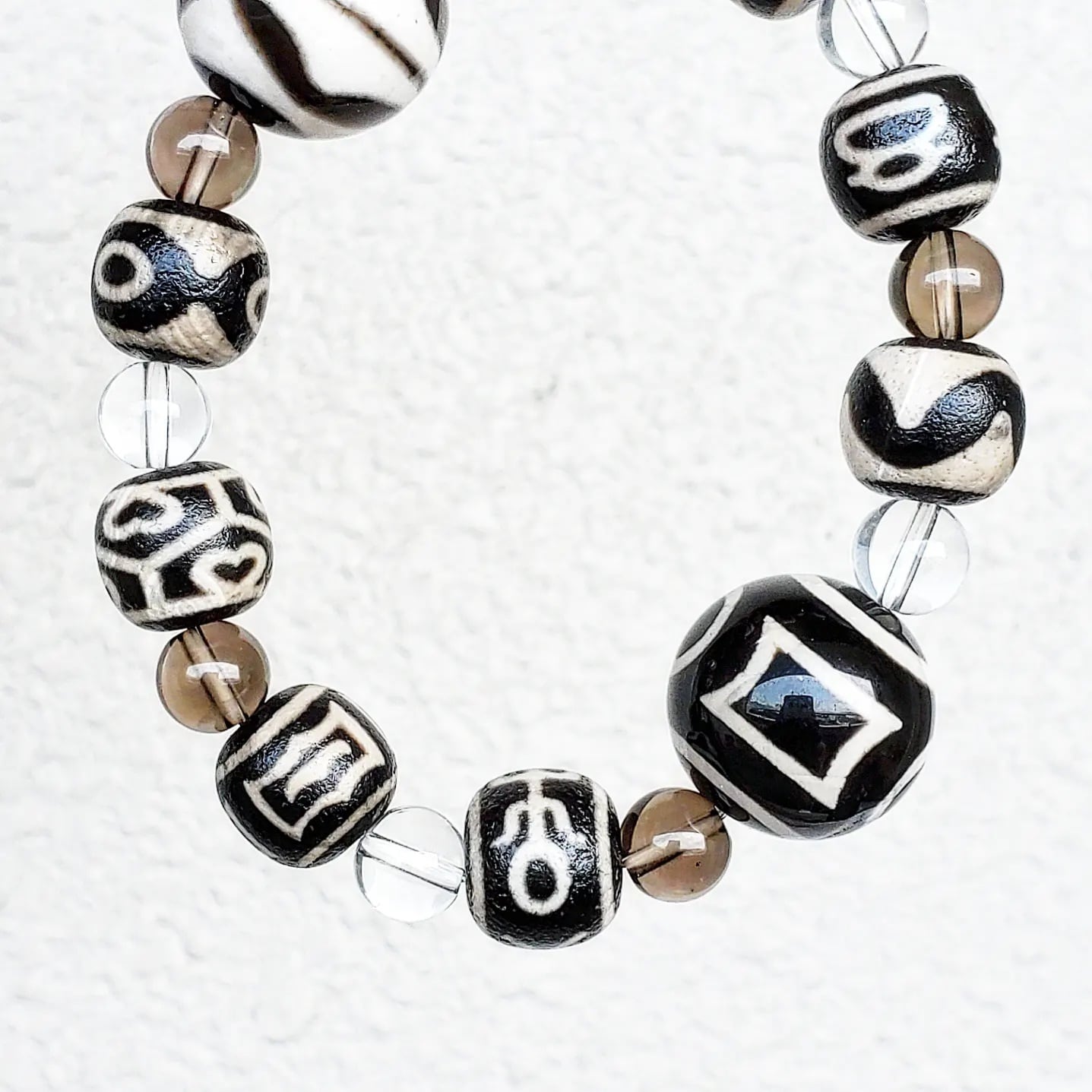 10種類の天珠とスモーキークォーツと水晶で組んだブレスレットです