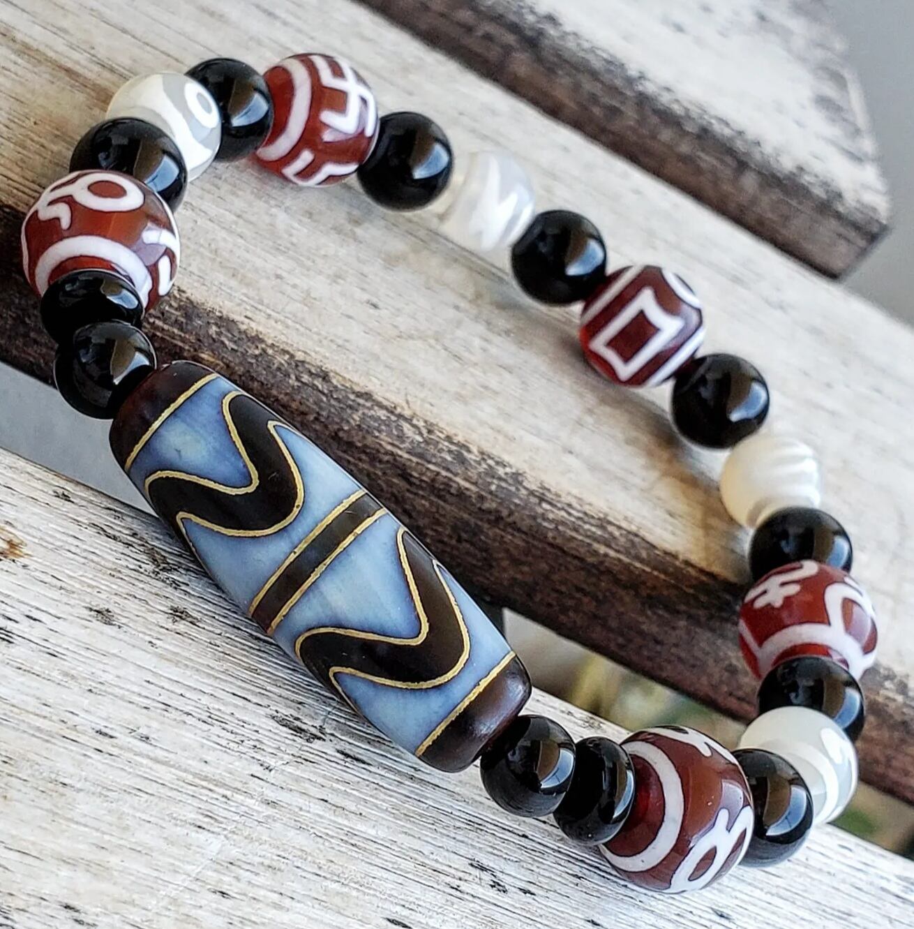 (天珠は性質上、色ムラや焼きムラ、柄ムラ、凹凸、クラック、ビビ、欠け等が存在しますことをご了承下さい)