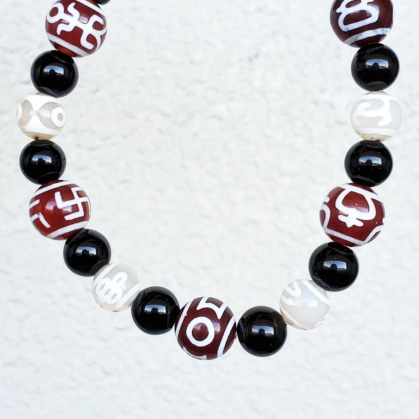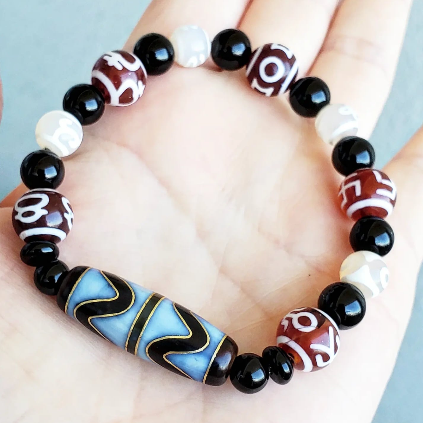 天珠とは、古代からチベットに伝わる聖なるお守りで、災厄・厄難を逃れ、あらゆる幸運・財運を招くと信じられています