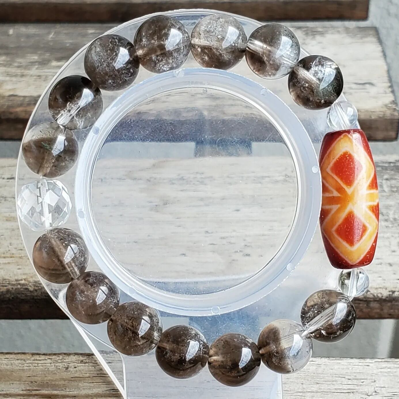 〈大玉〉金剛杵(こんごうしょ)天珠 & バイカラーエレスチャルスモーキークォーツ(天然アイリス) & 水晶