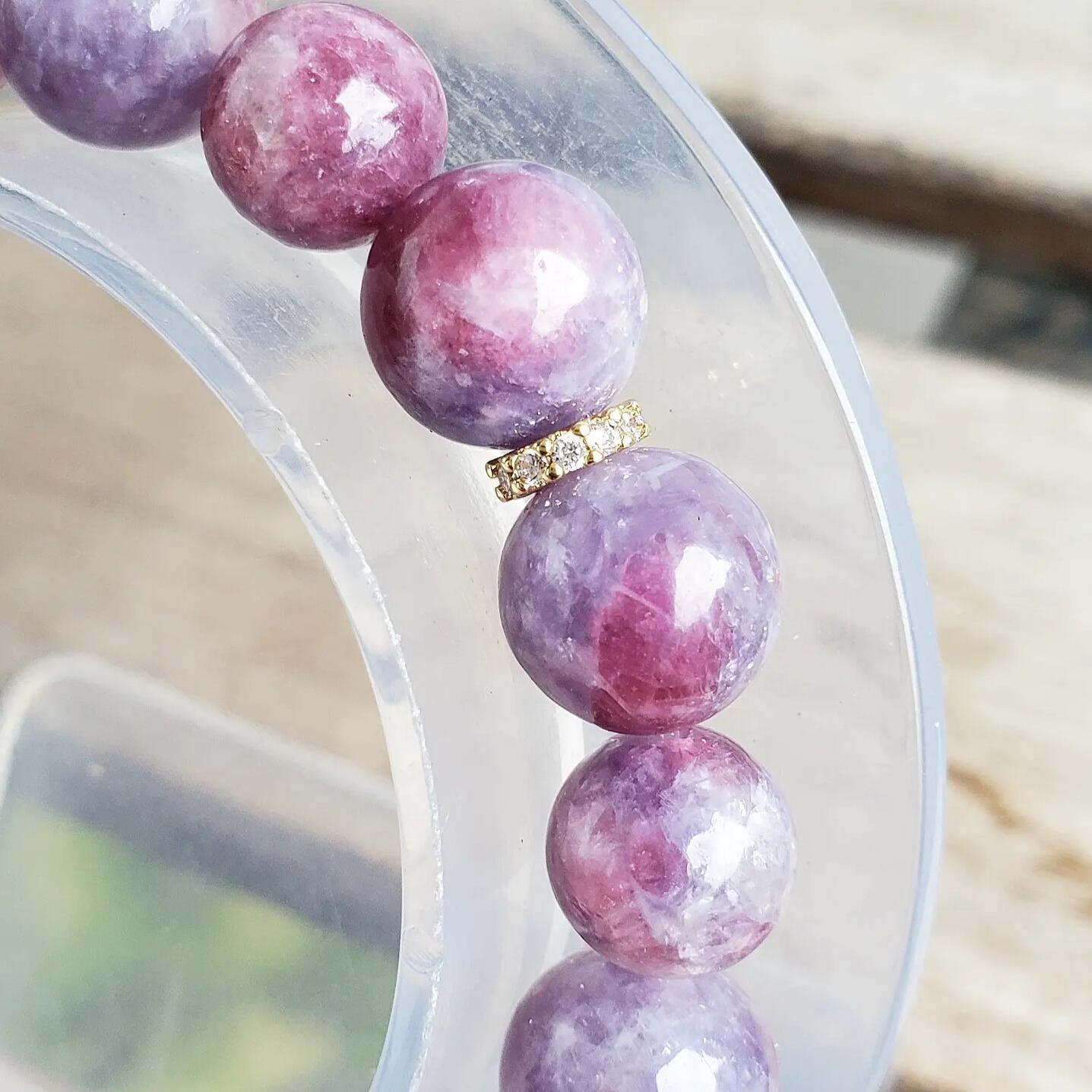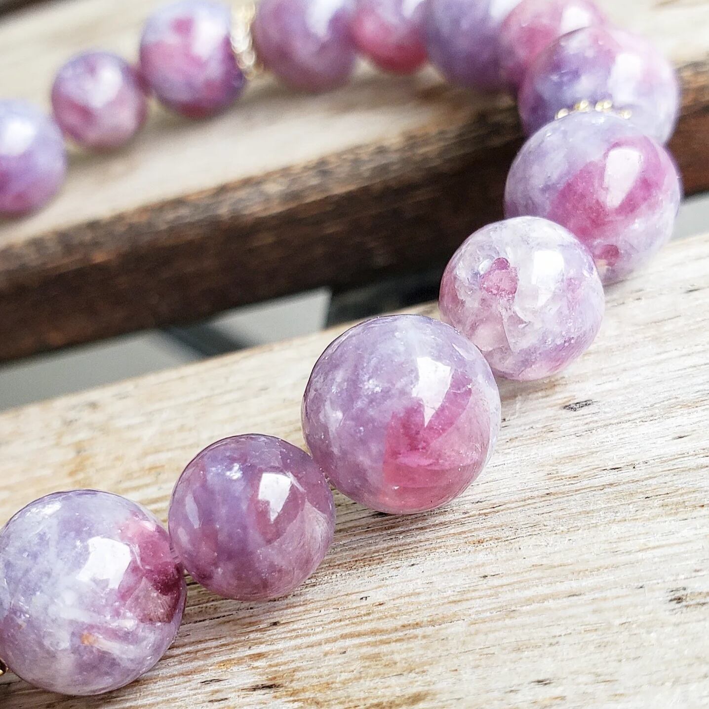 レピドライト、ピンクトルマリン、スモーキークォーツ、クリーブランダイト(白雲母の一種)が混ざりあった鉱石です