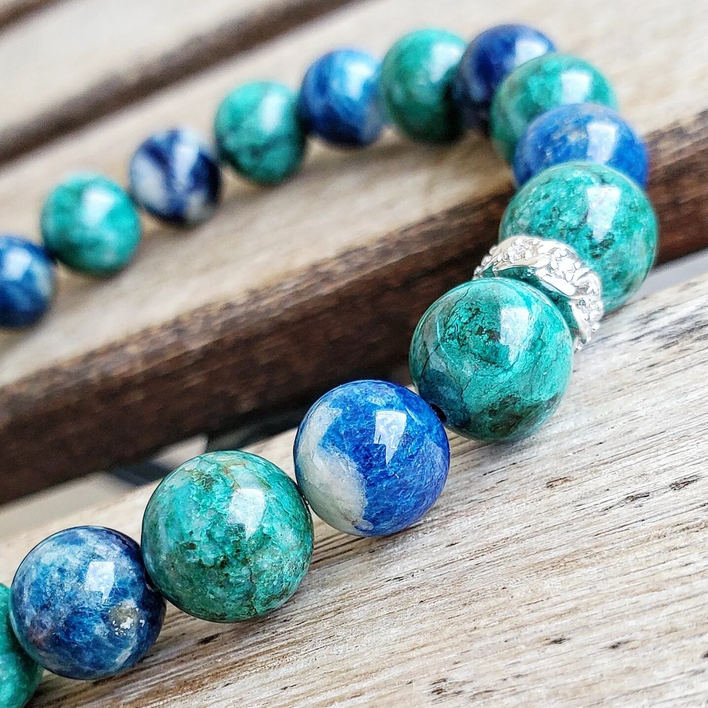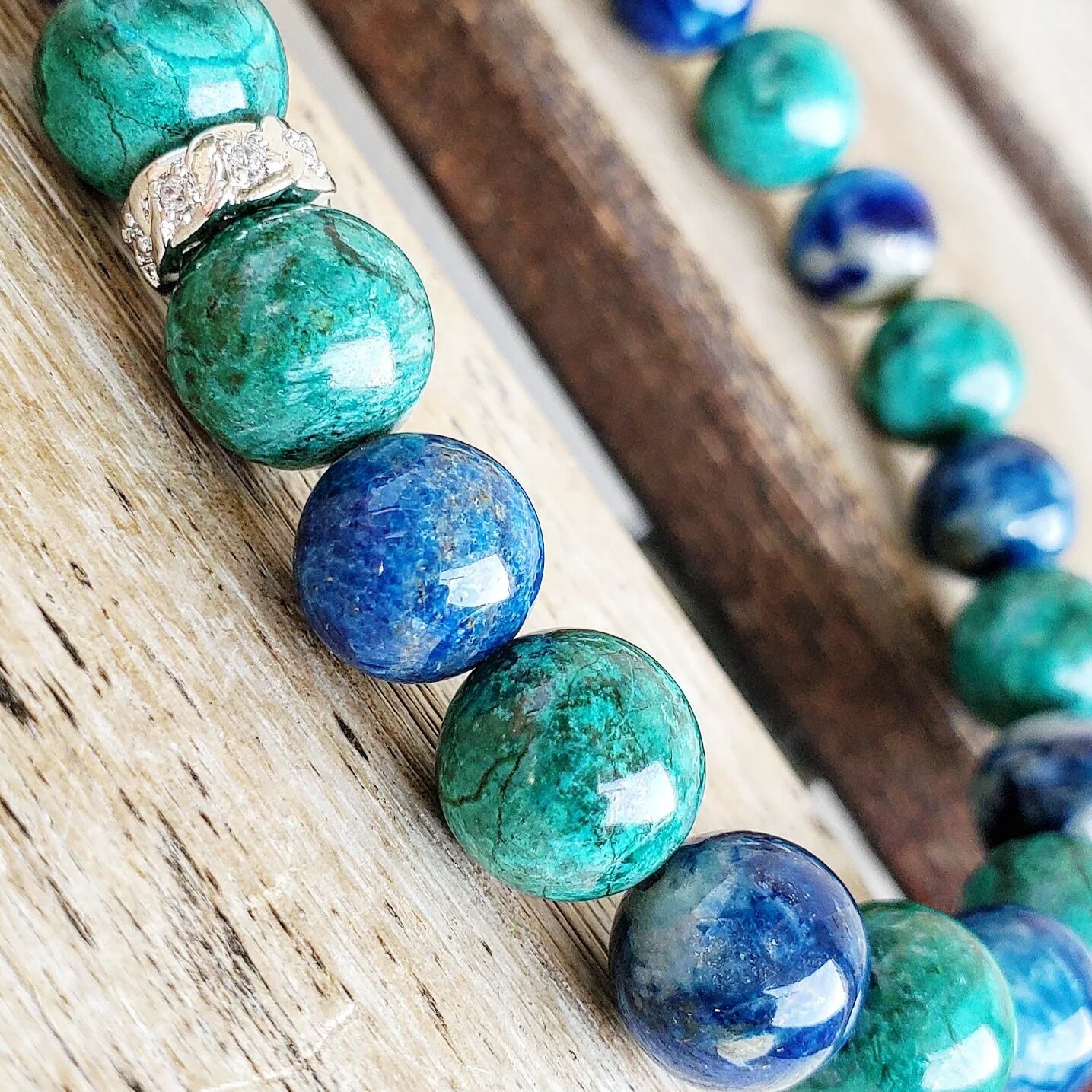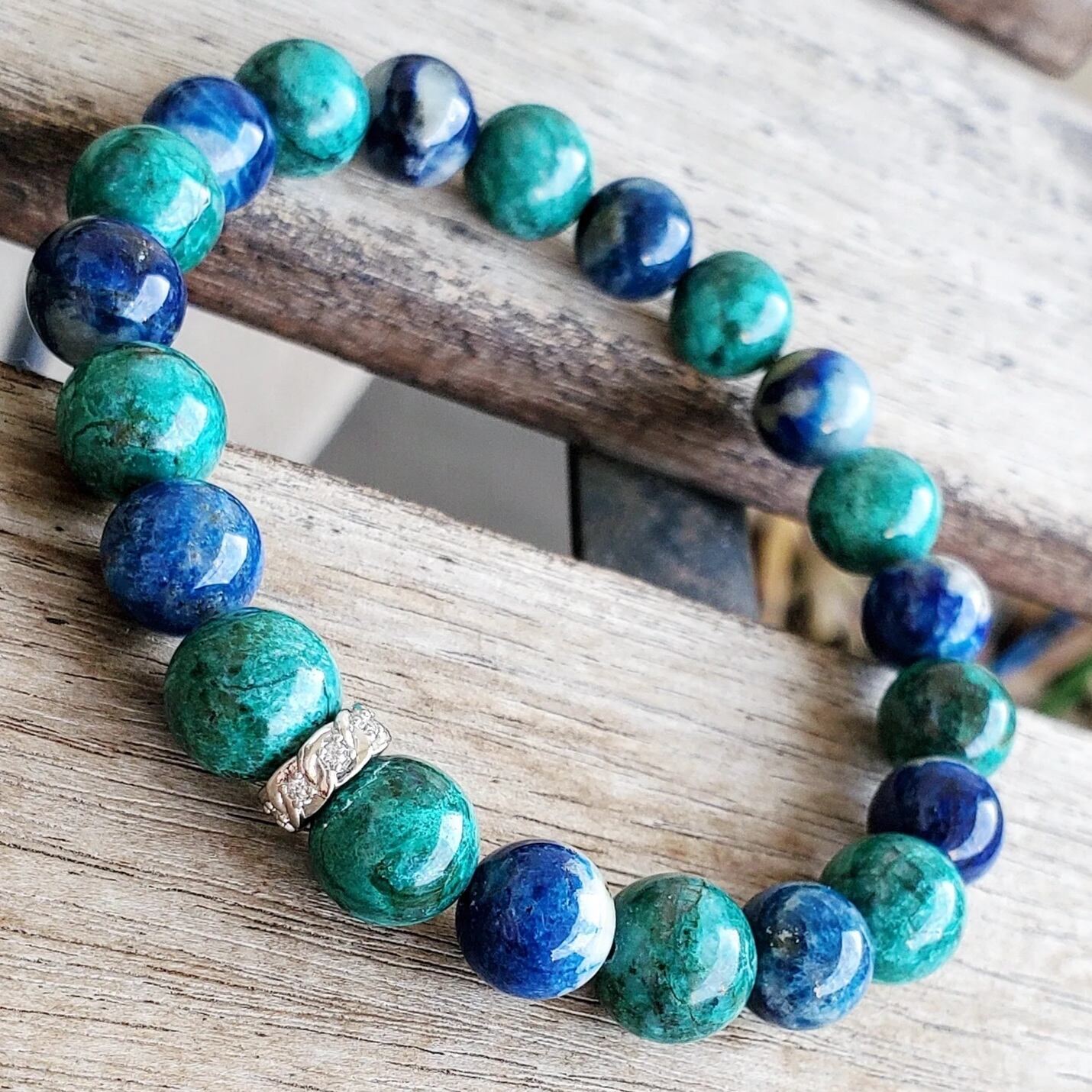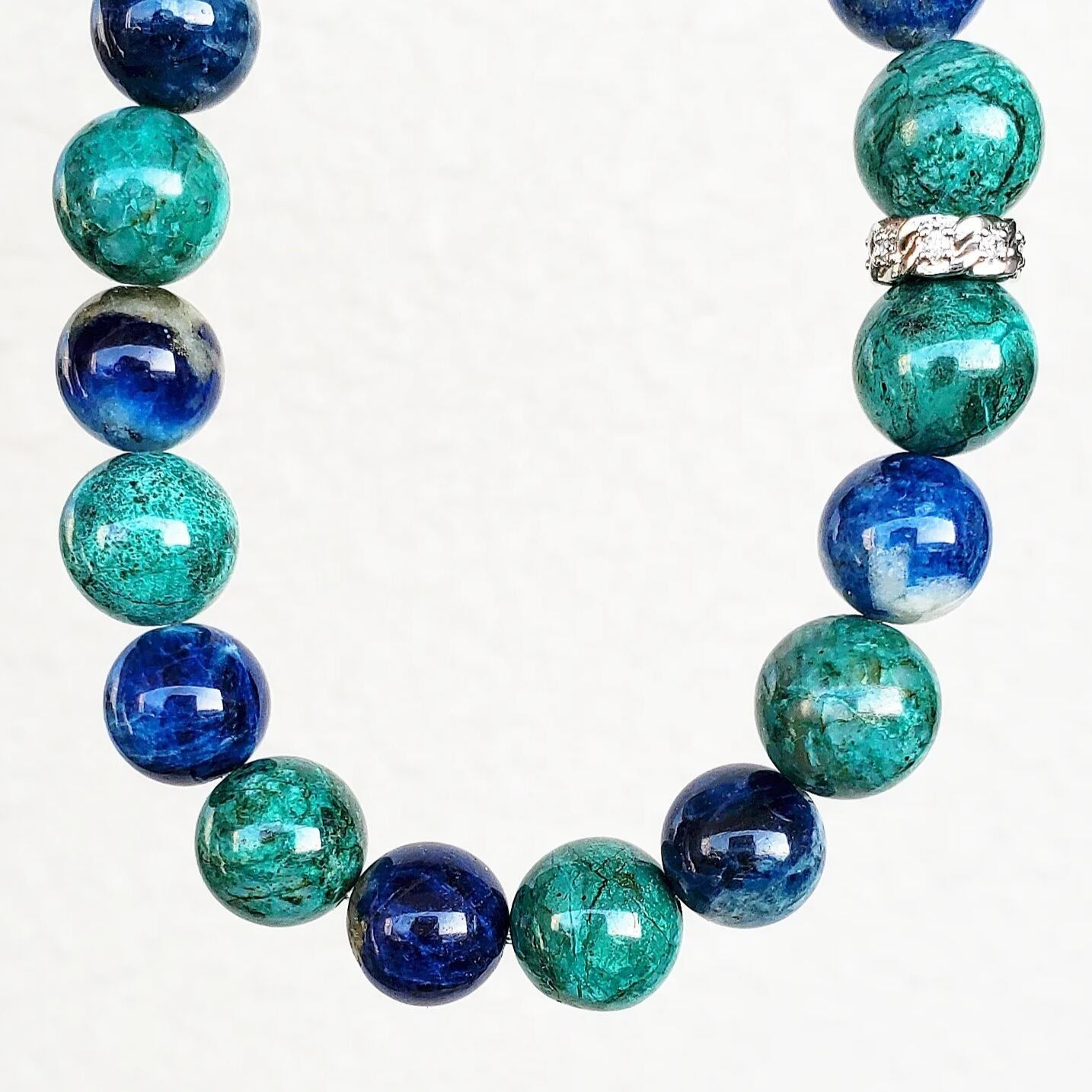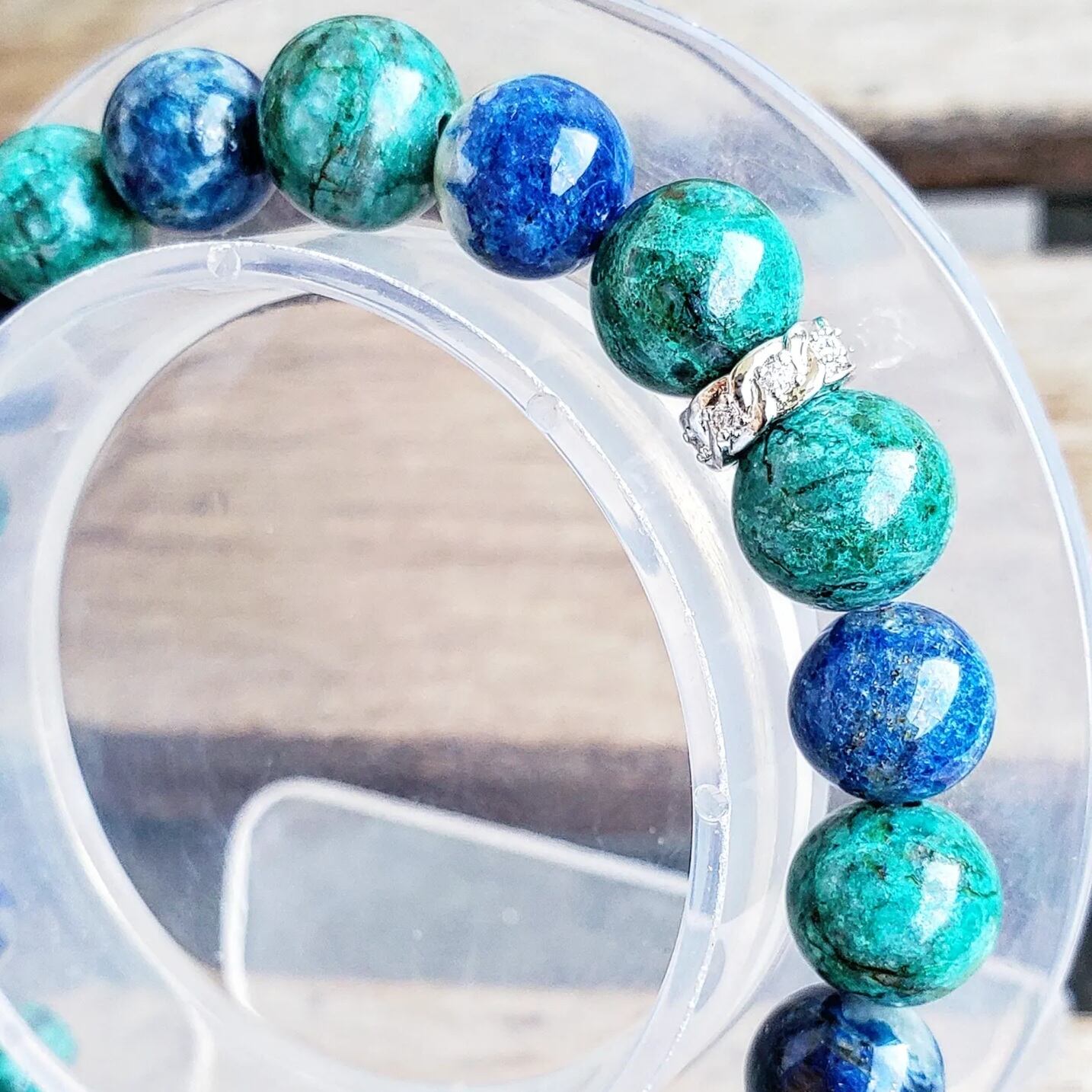 アズライトやマラカイト、ターコイズ、銅等と混ざり合うため、色々な個性を楽しめる石です