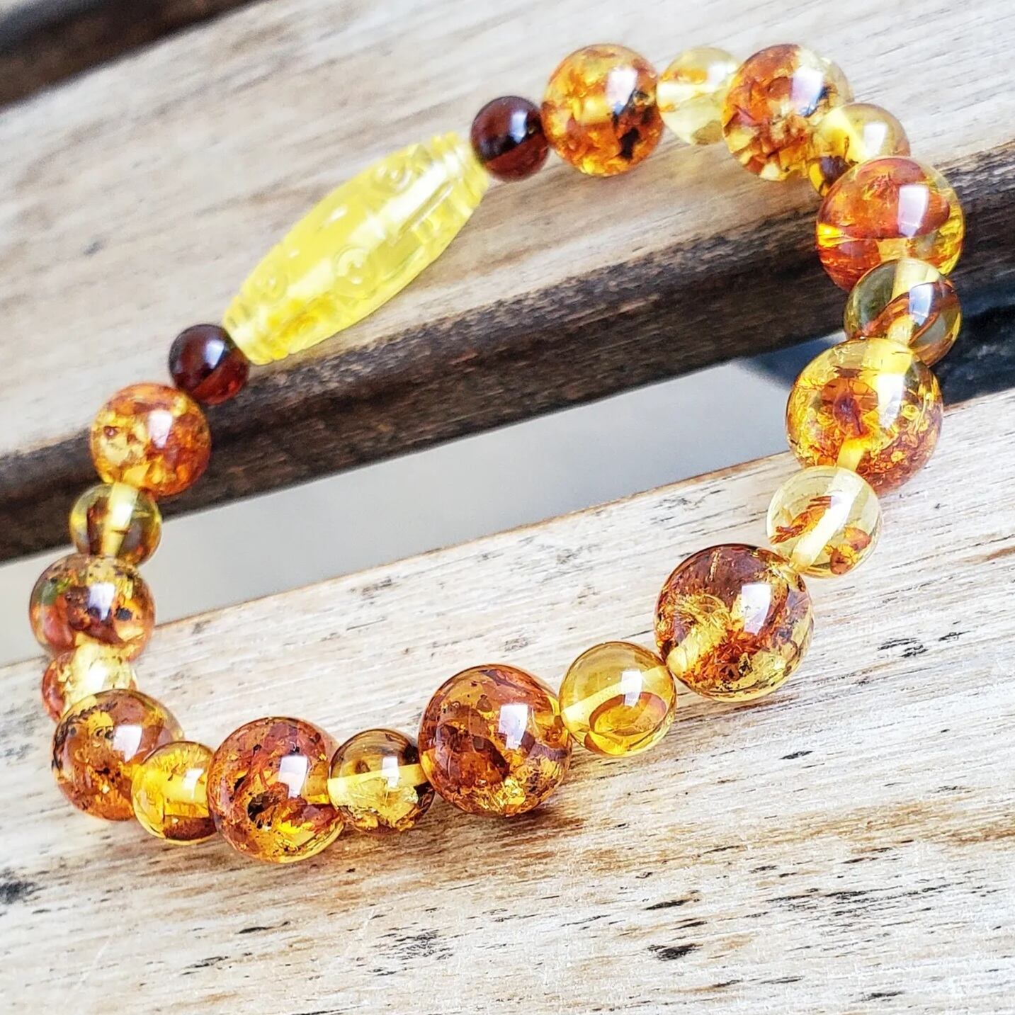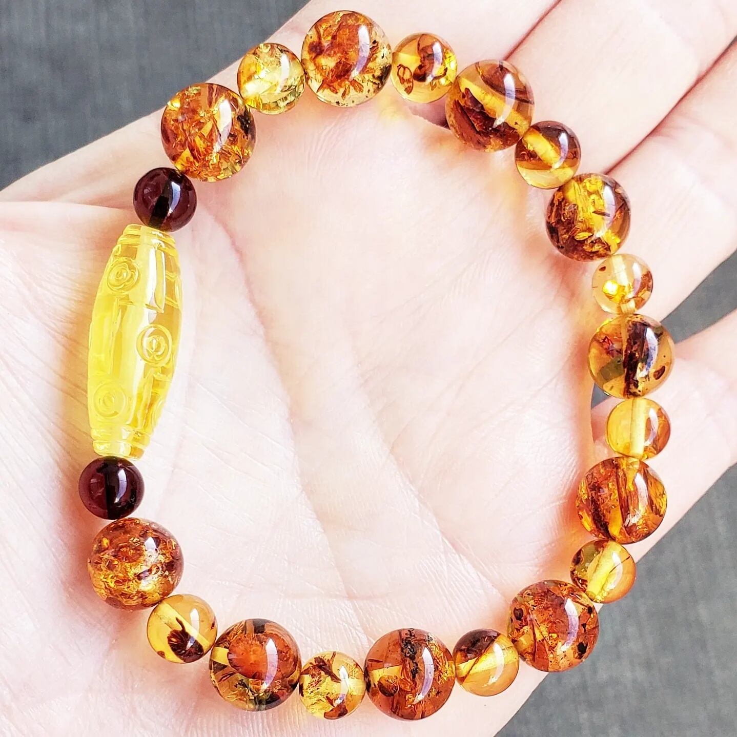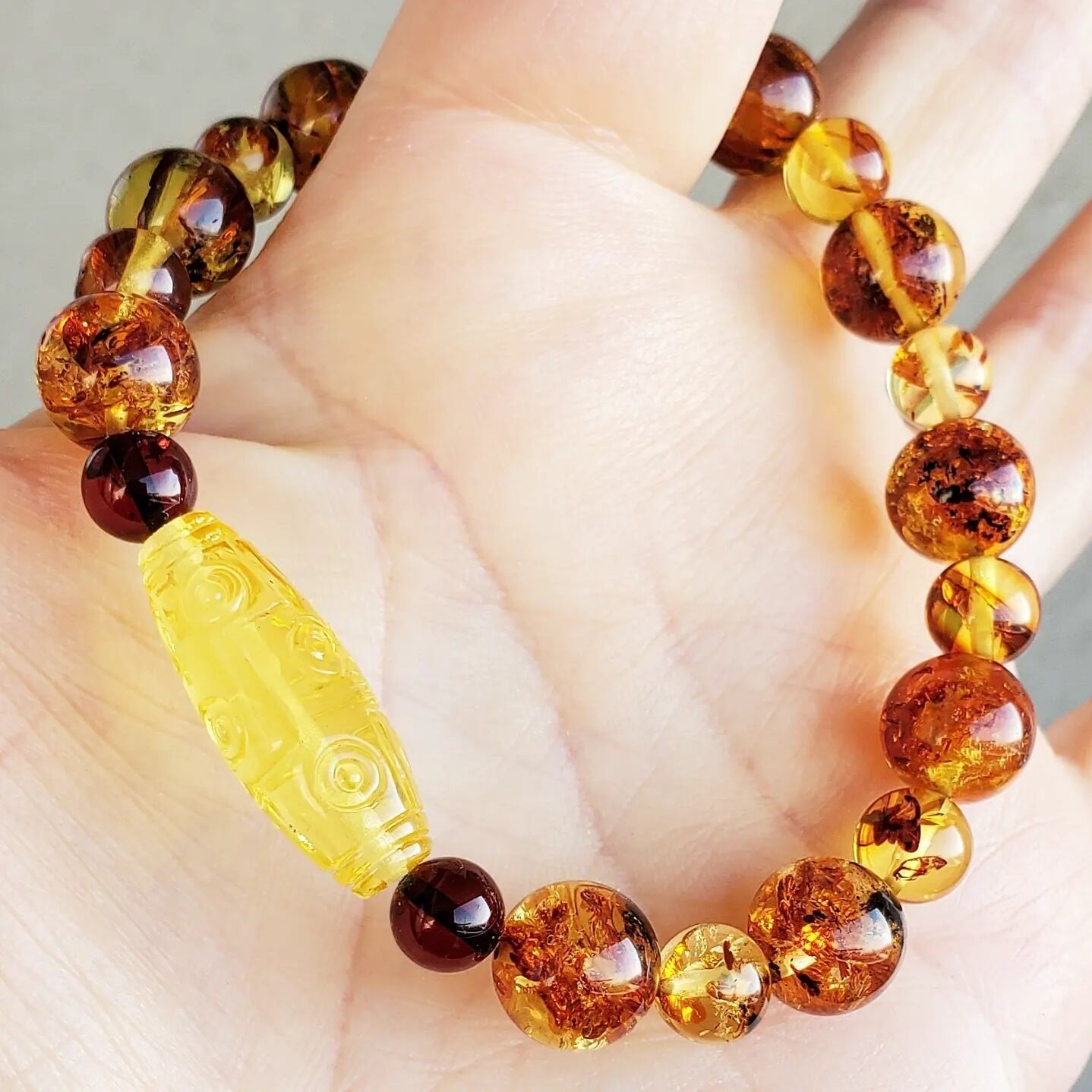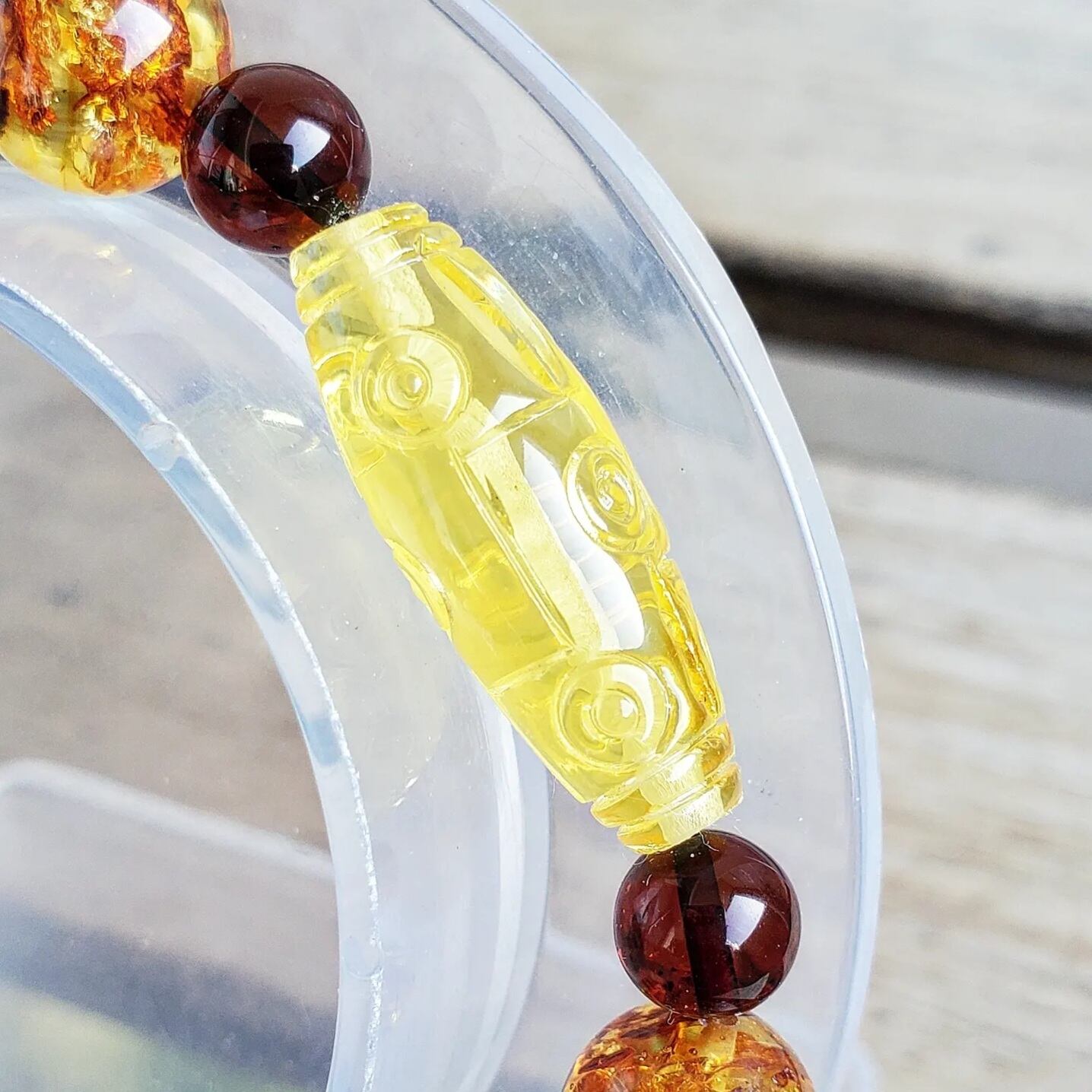 天珠型ハニーアンバー(九眼彫り) & ハニーナッツアンバー & レッドアンバー