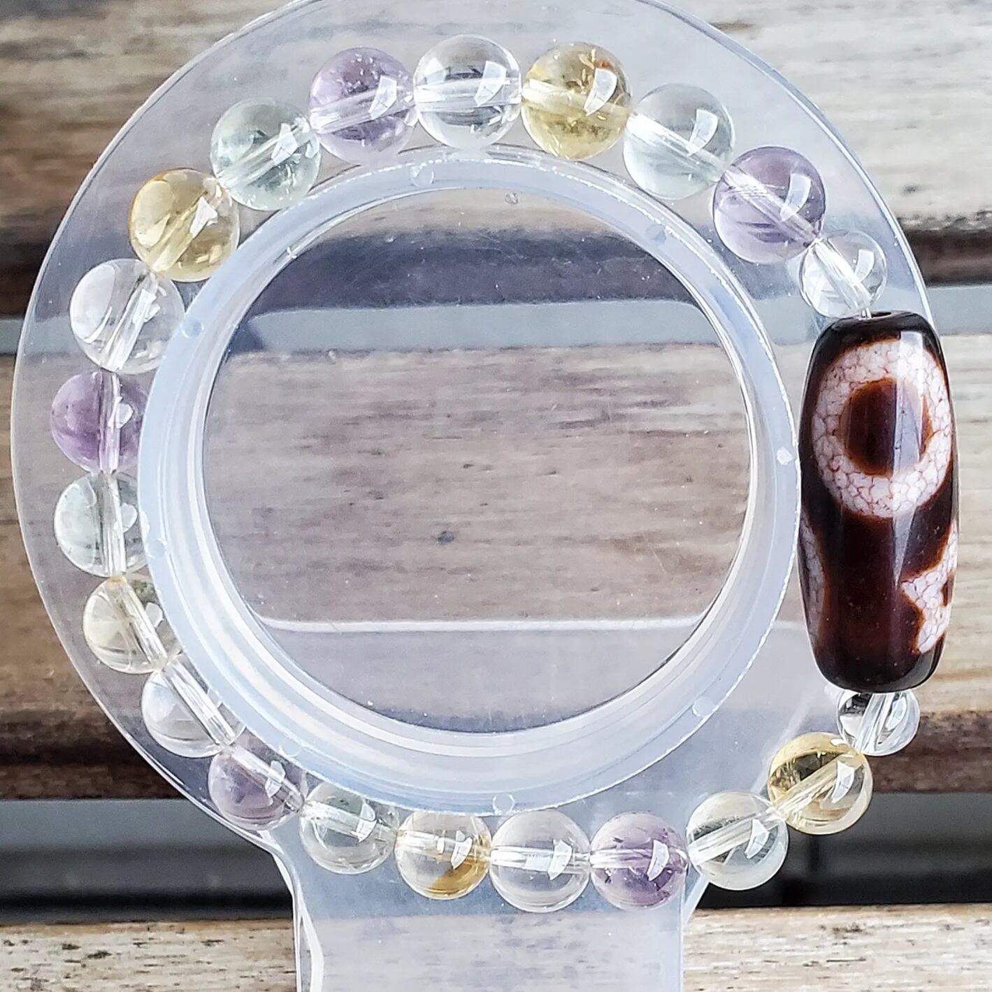 日月星(にちげつせい/ひつきぼし)天珠[血糸龍紋入り] & ミックス水晶