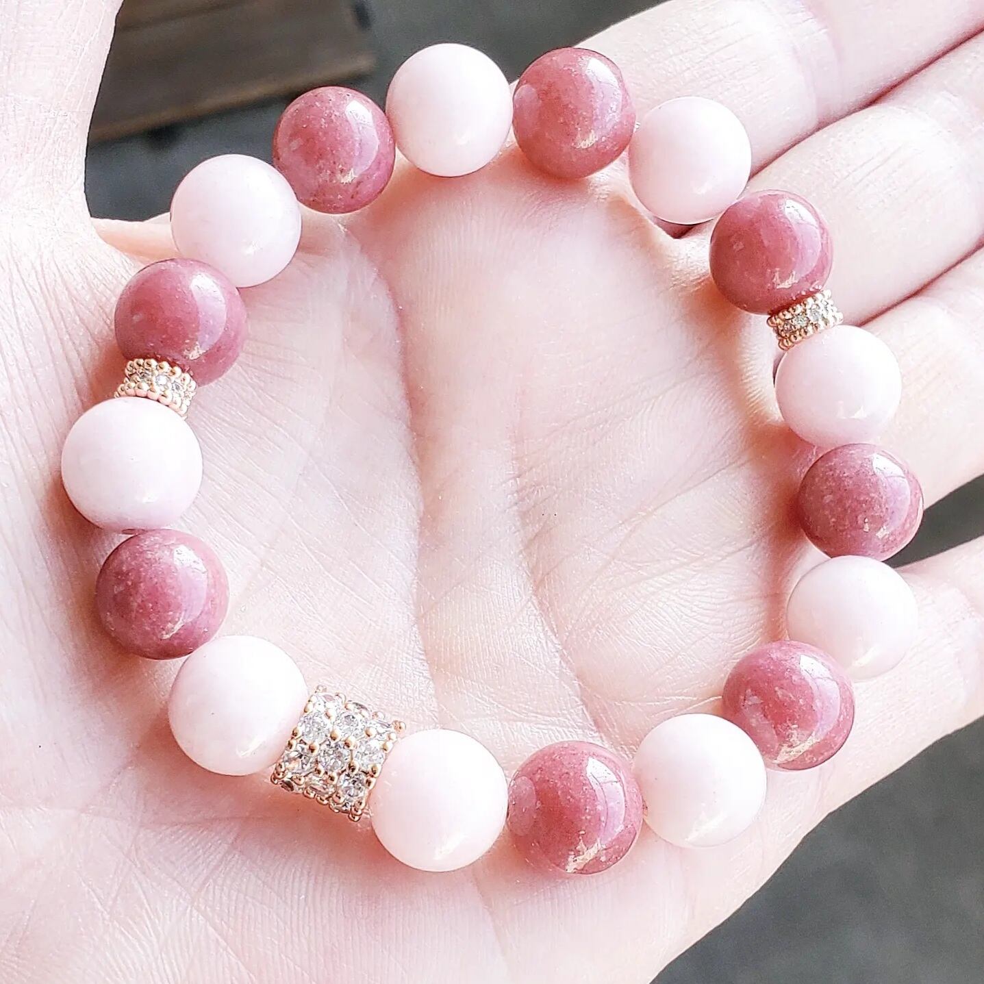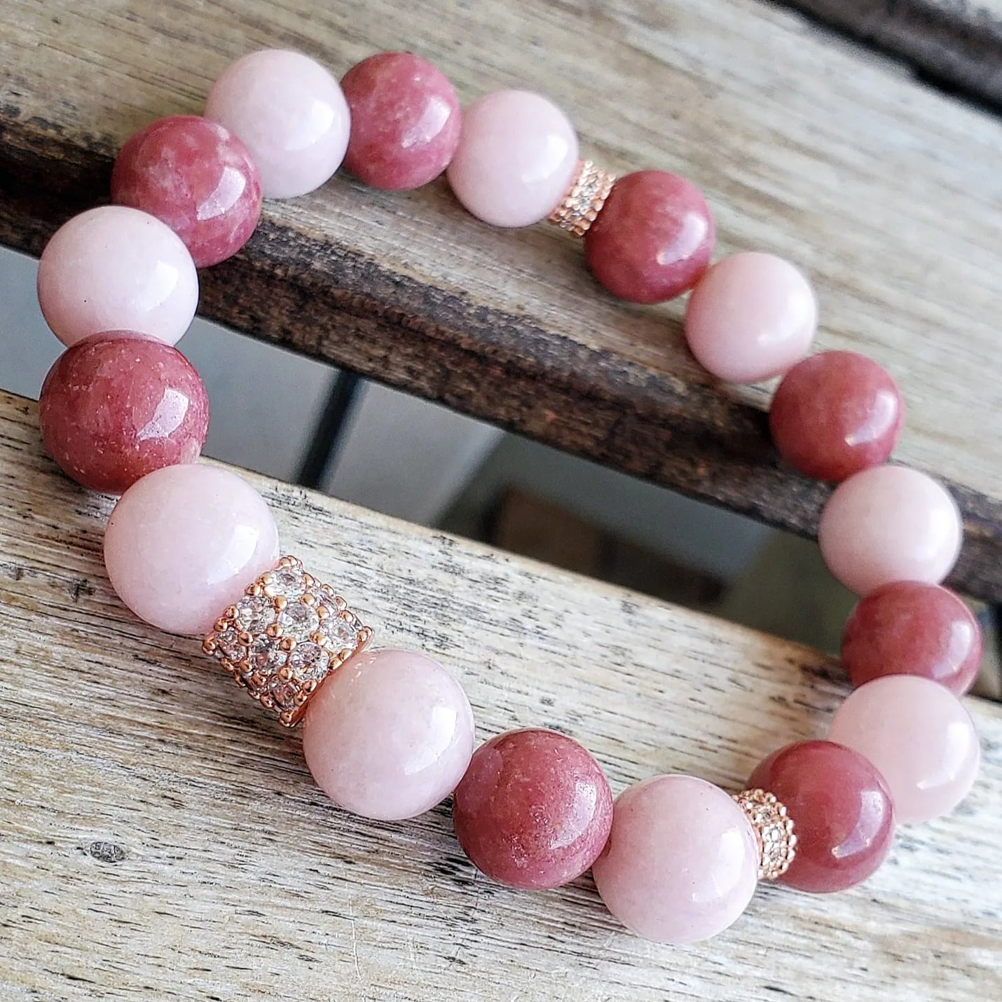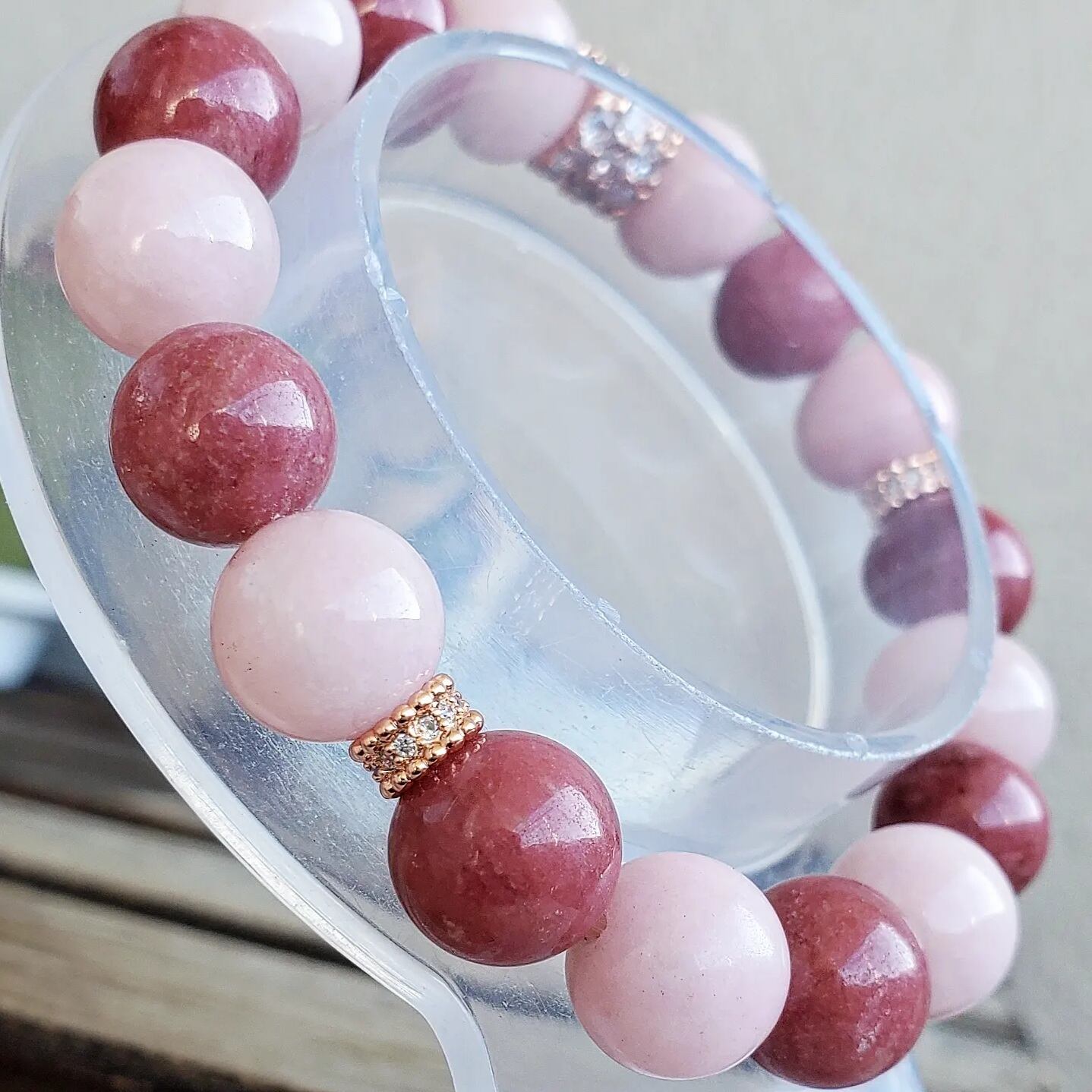濃いピンクカラーと淡いピンクカラーのチューライトを交互に組んだブレスレットです