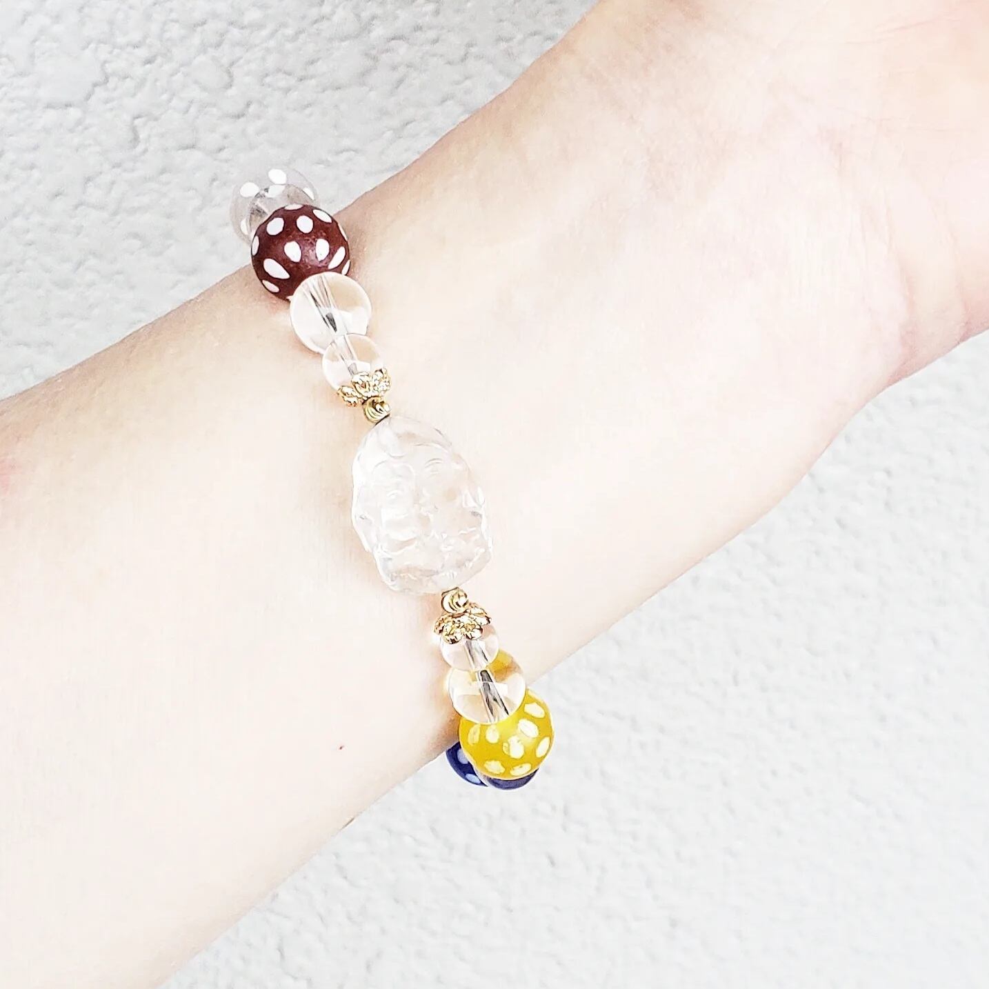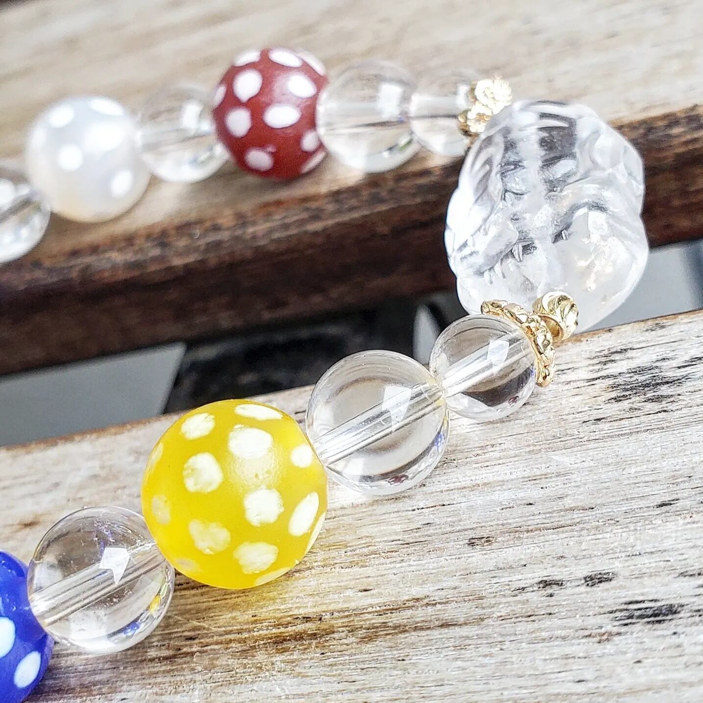 水晶(ガネーシャ) & 満天(まんてん)天珠 & 緑線天珠 & 水晶