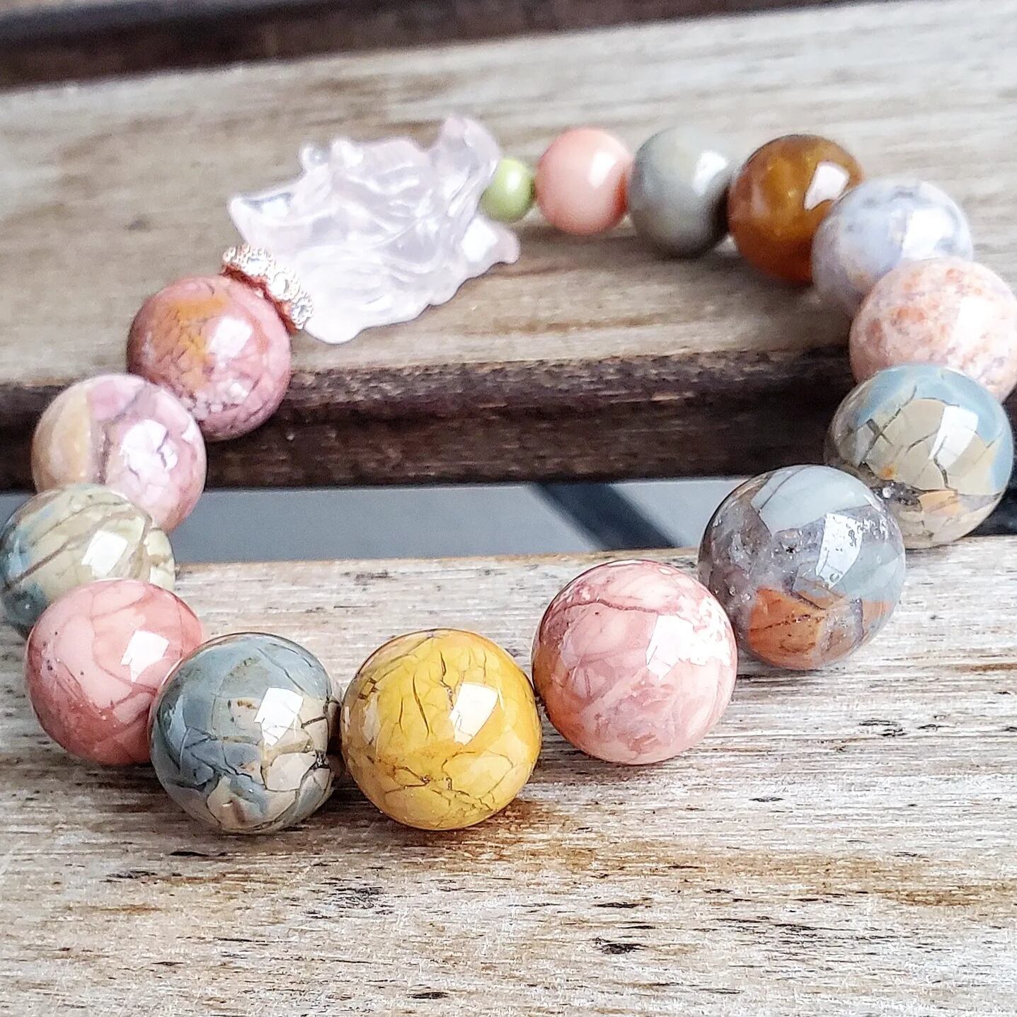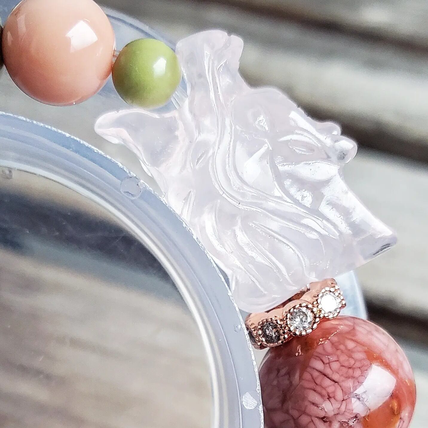 〈大玉〉ローズクォーツ(龍頭/ドラゴンヘッド) & アラシャンアゲート(阿拉善瑪瑙)