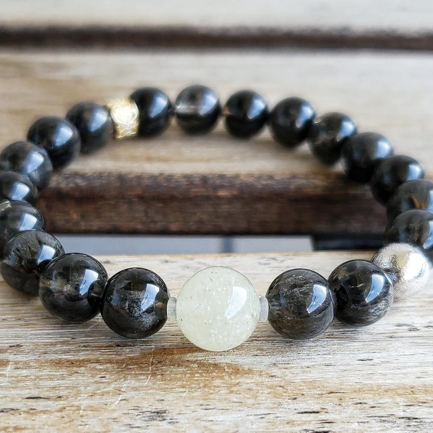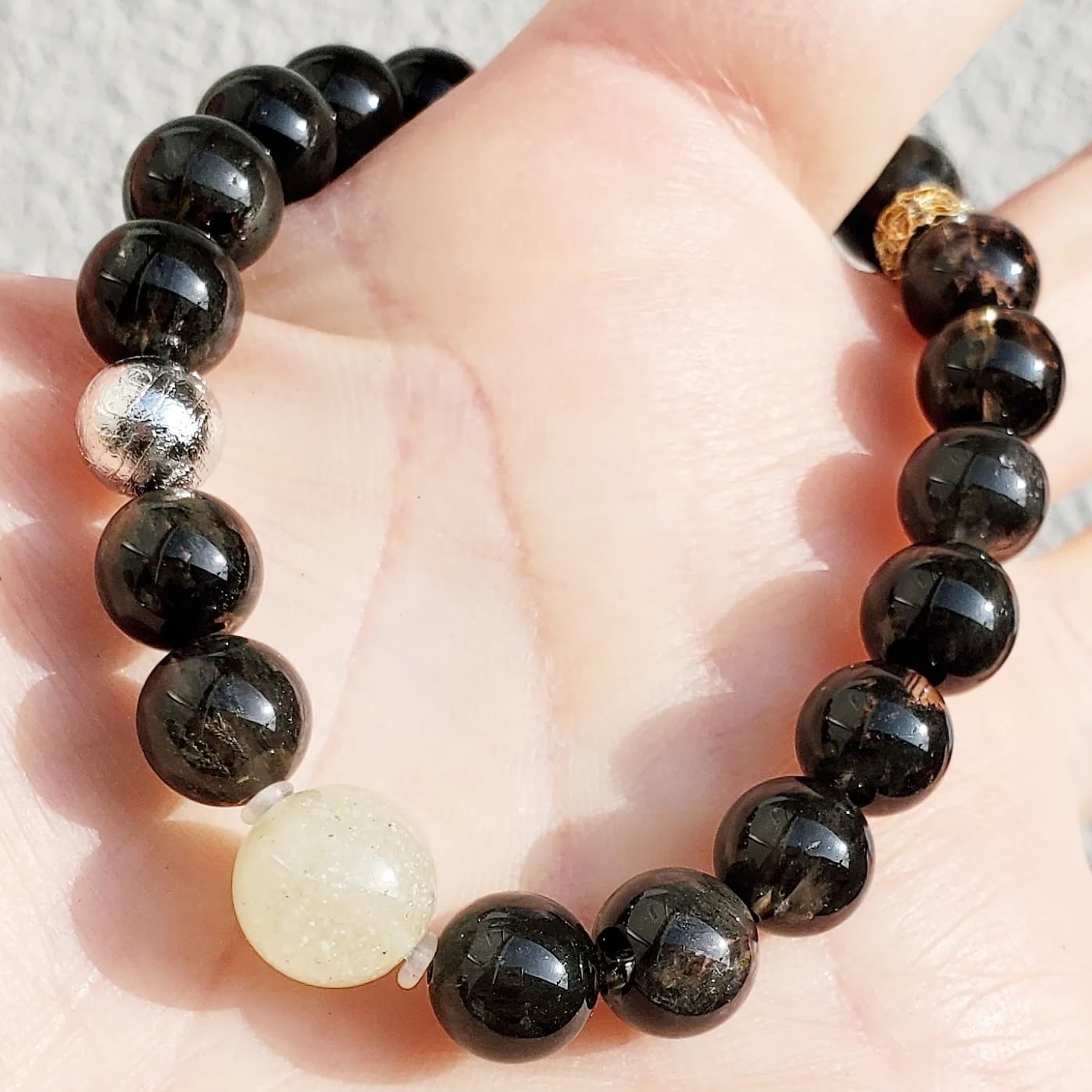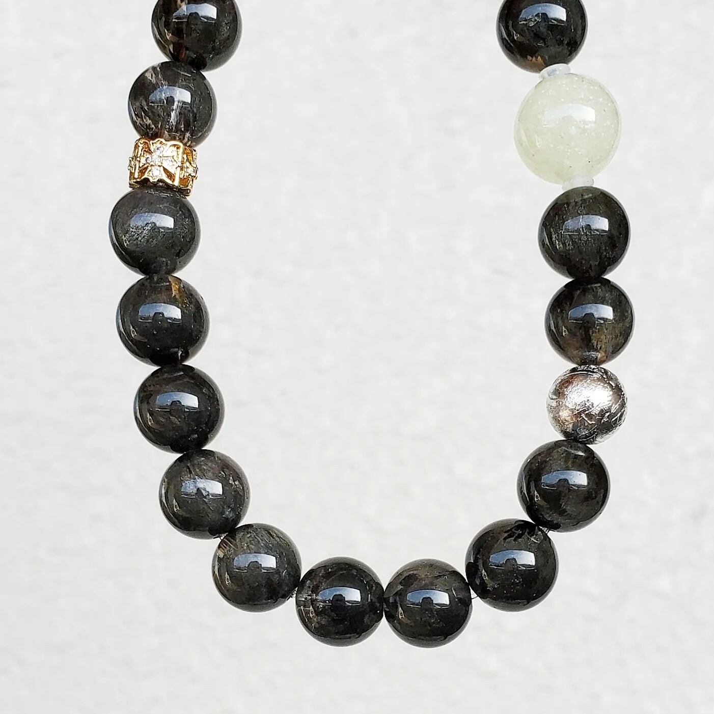 リビアングラス & ギベオン鉄隕石(シルバーメッキ) & ブラックオーラライト23