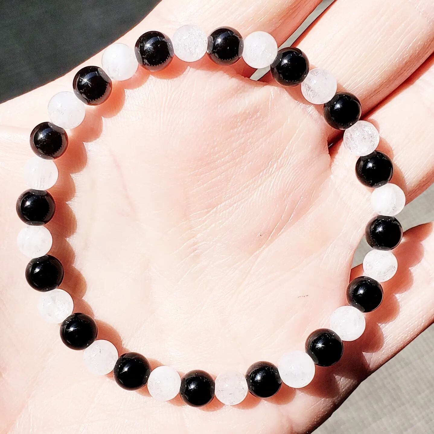 漆黒のモリオンと対比するため、ホワイト系の天然アイリスクォーツを選抜しました