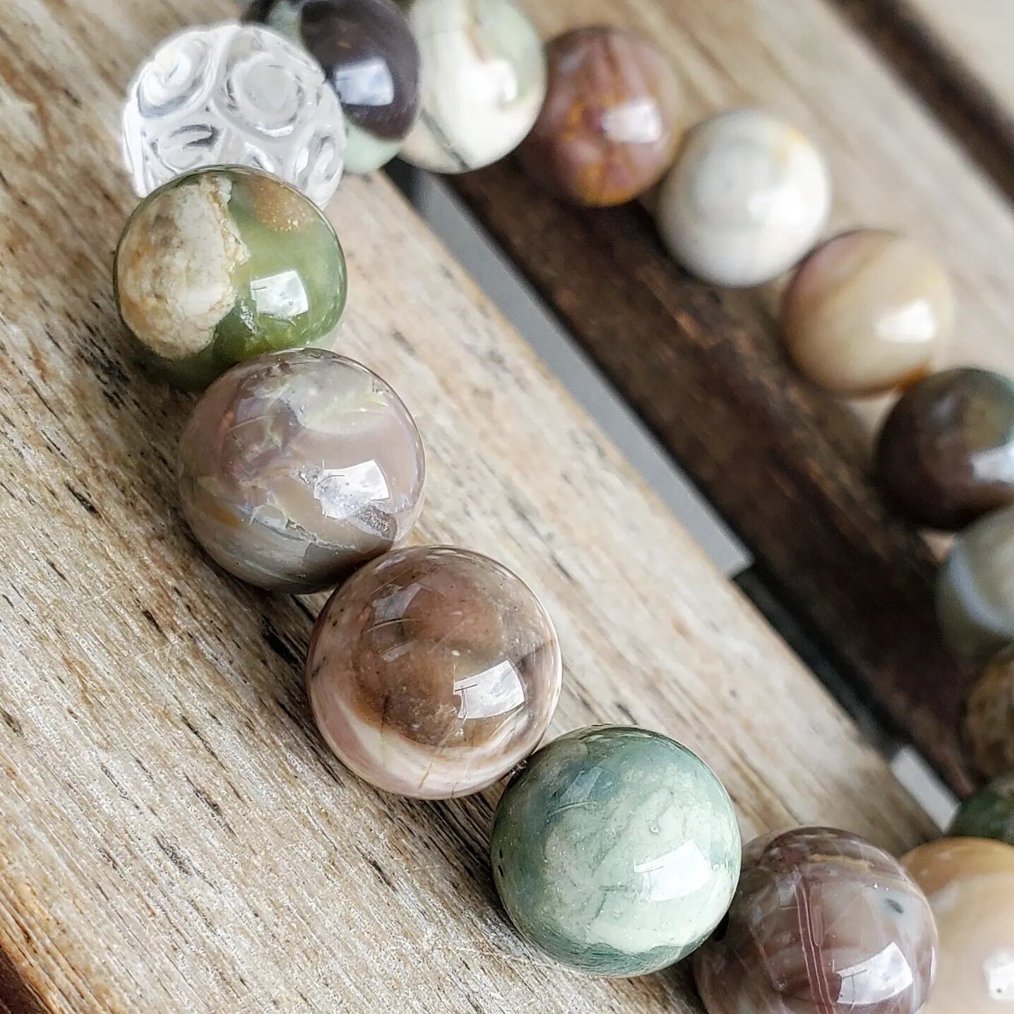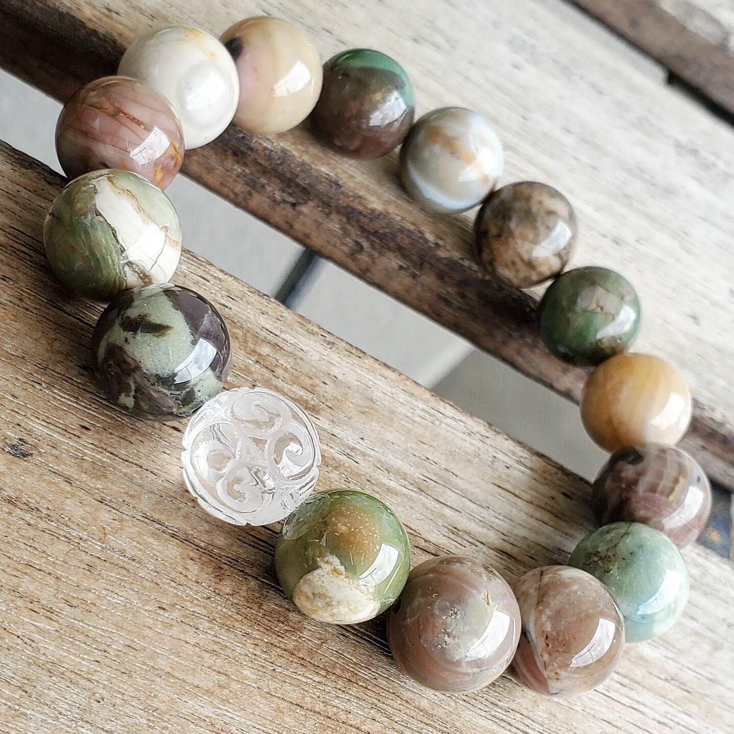 〈大玉〉水晶(マニ車回紋珠) & アラシャンアゲート