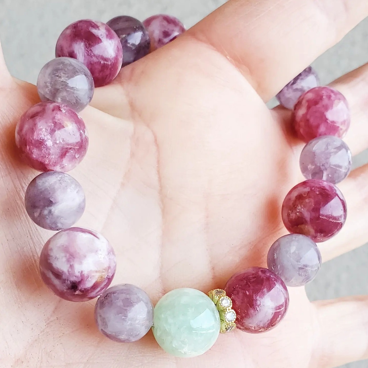 混ざり合い方はそれぞれ唯一無二で個性的、かつ水晶(モース硬度7)が雲母(マイカ)のもろさ(柔らかく剥がれやすい性質)を多少なりとも補っているといえます