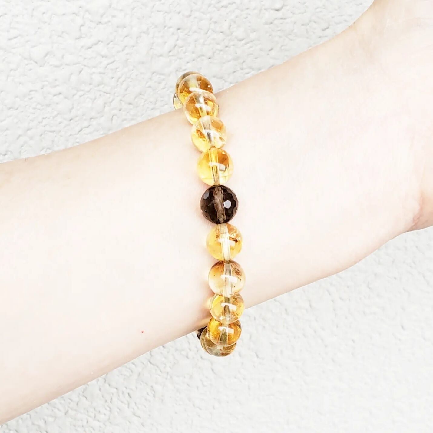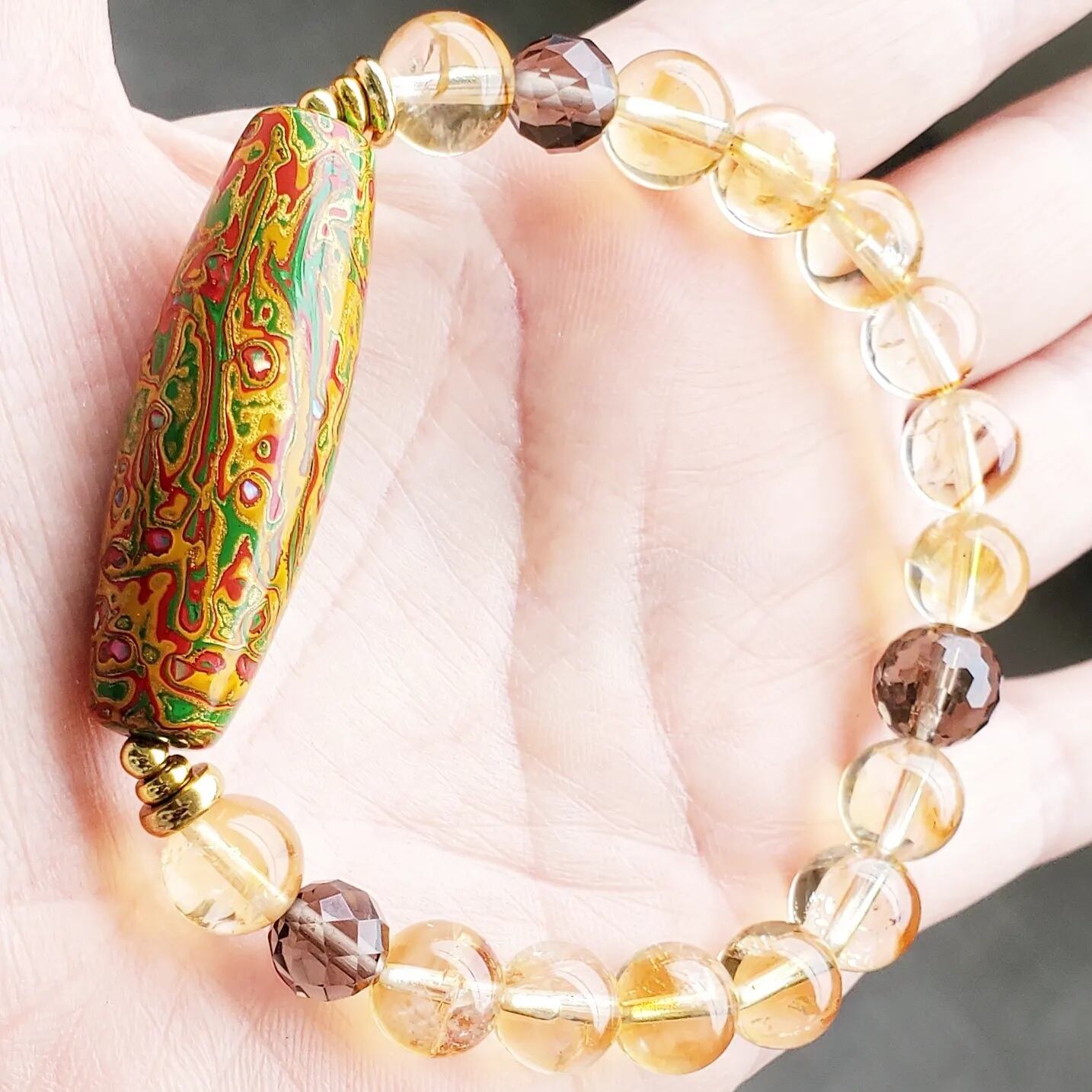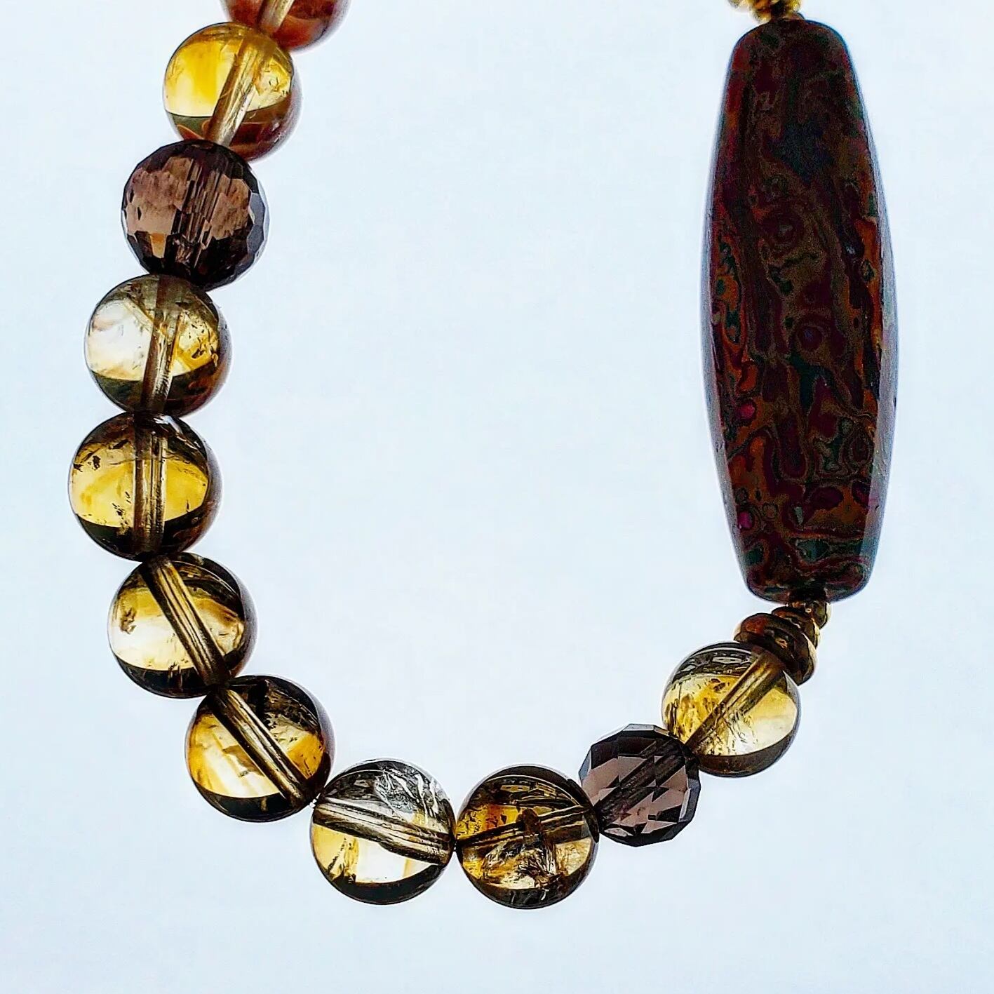 大漆螺鈿(らでん)天珠型ビーズ(黒檀) & シトリン & スモーキークォーツ(カット)