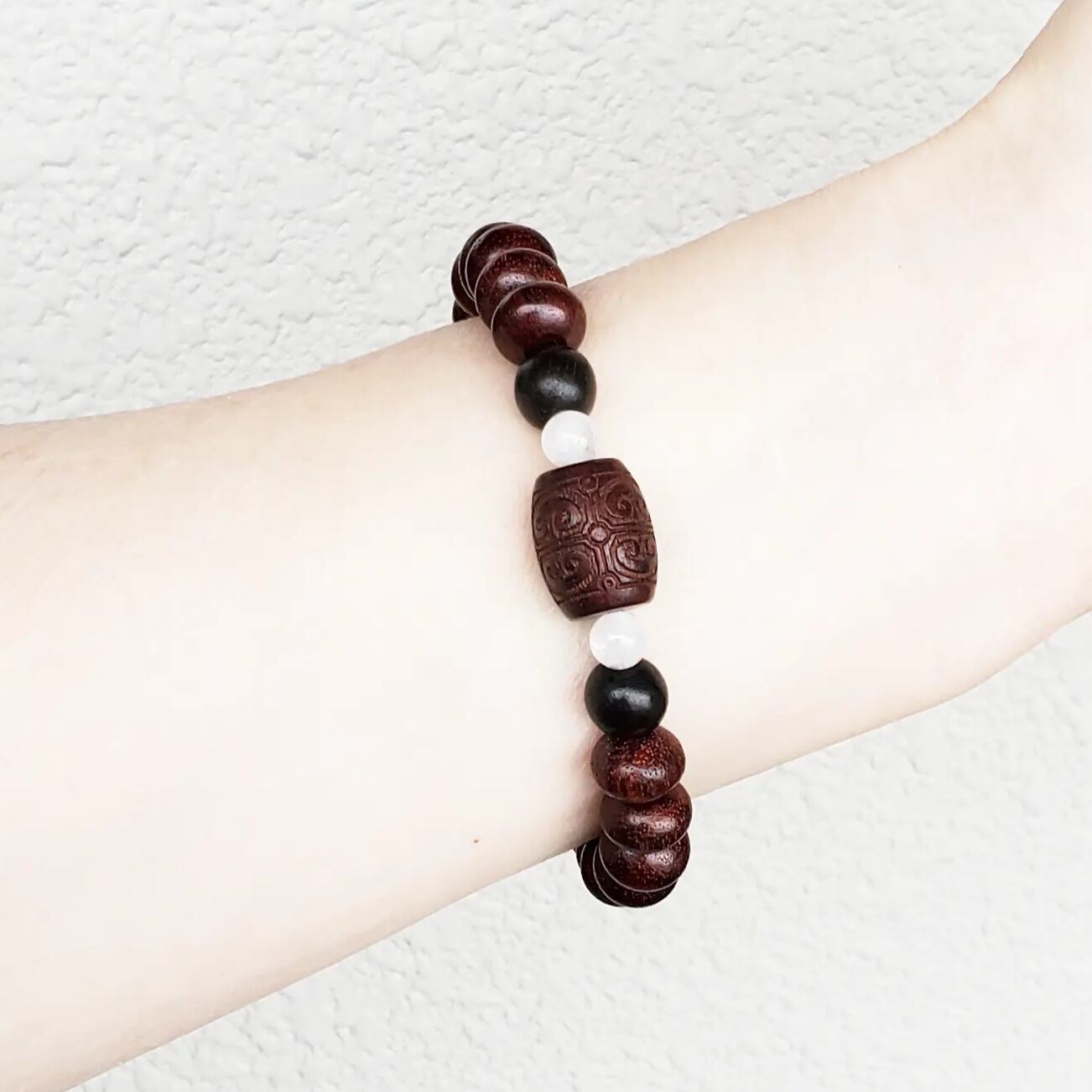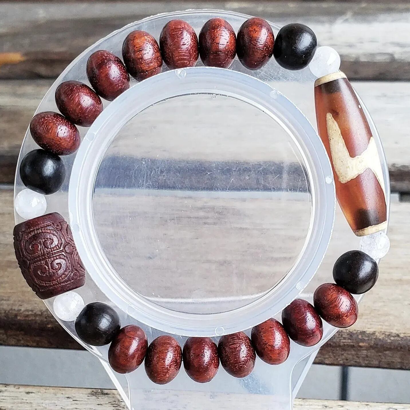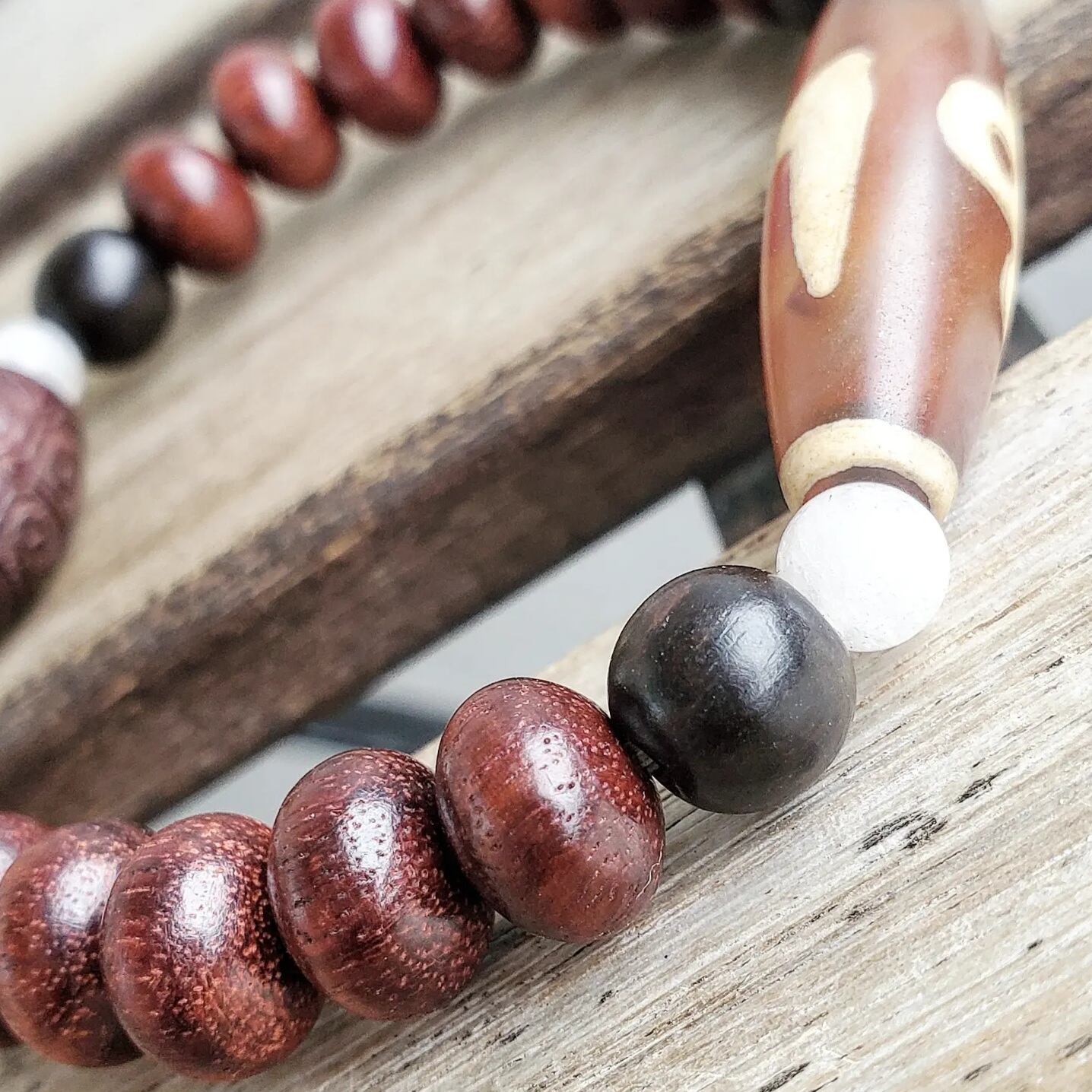閃電五眼(せんでんごがん)天珠 & 赤檀(しゃくだん)タル型[如意彫り] & 赤檀(しゃくだん) & 黒檀(こくたん) & アイリスクォーツ