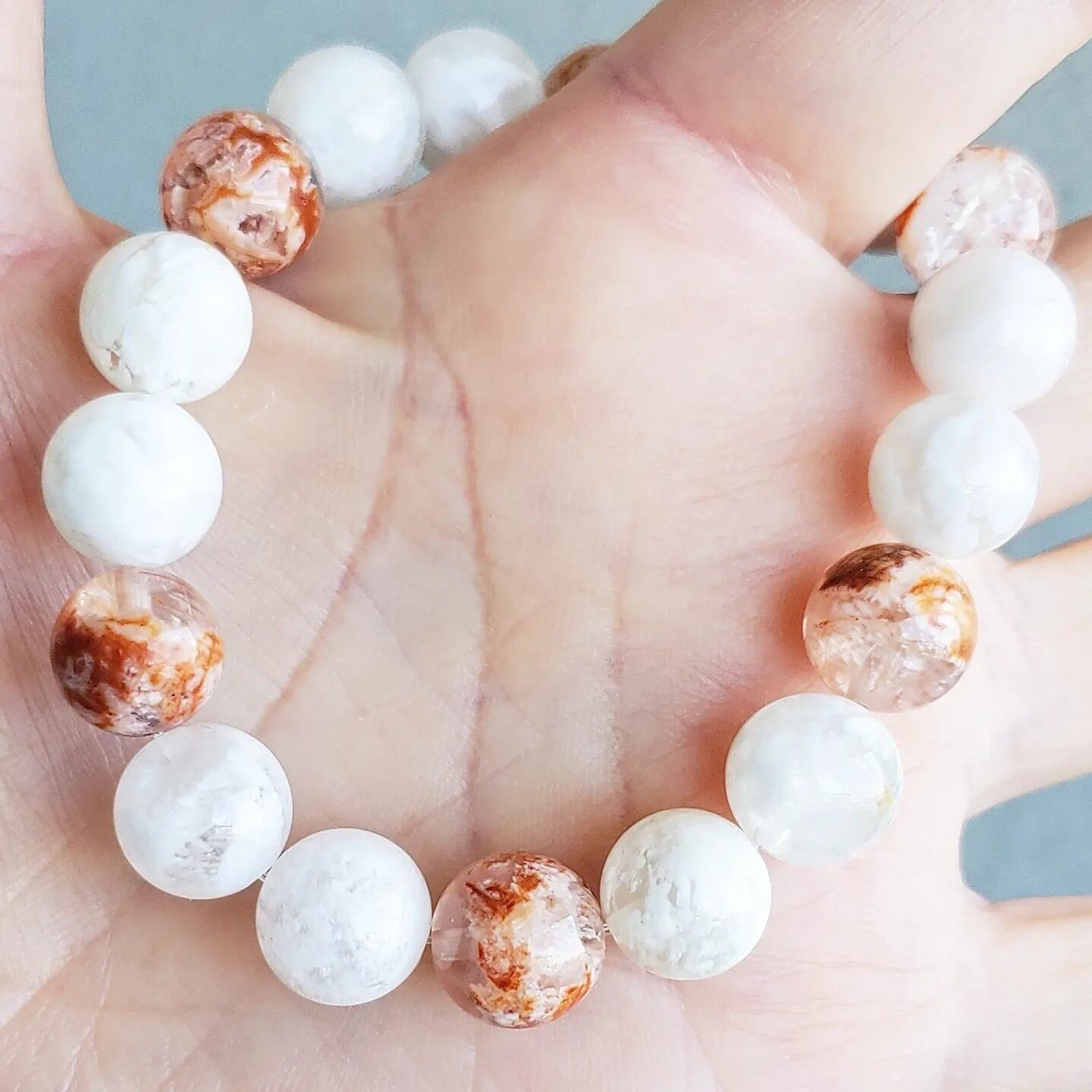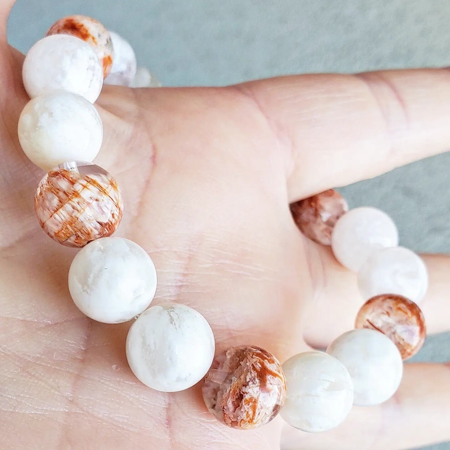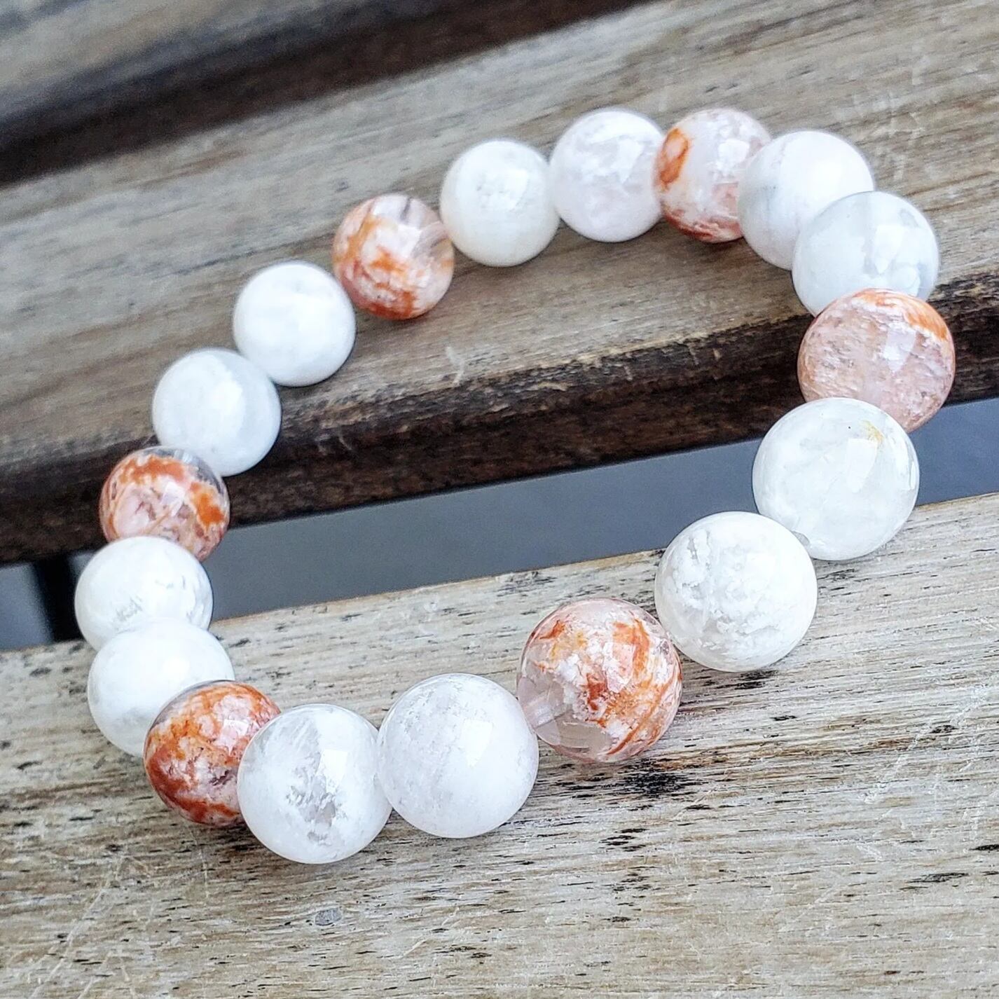 〈大玉〉オレンジホワイト セリサイトインクォーツ & ホワイト セリサイトインクォーツ
