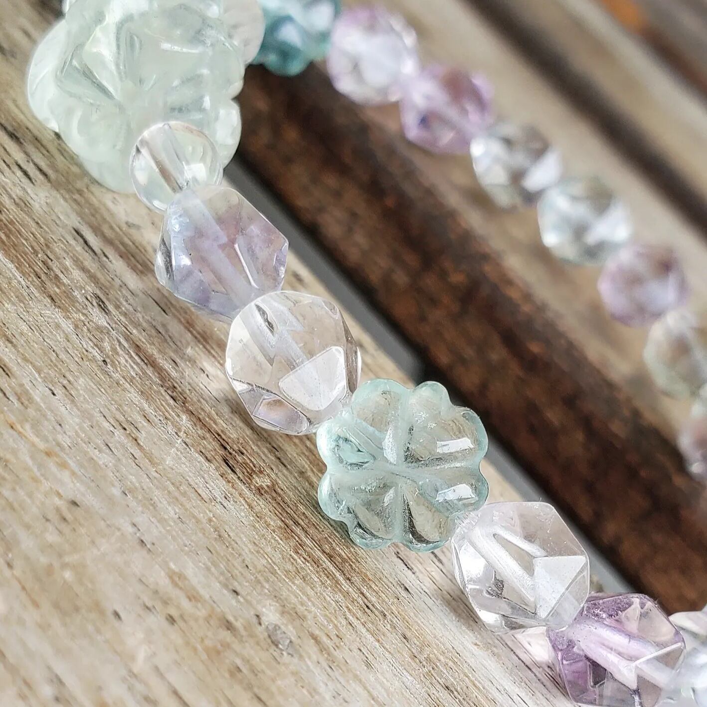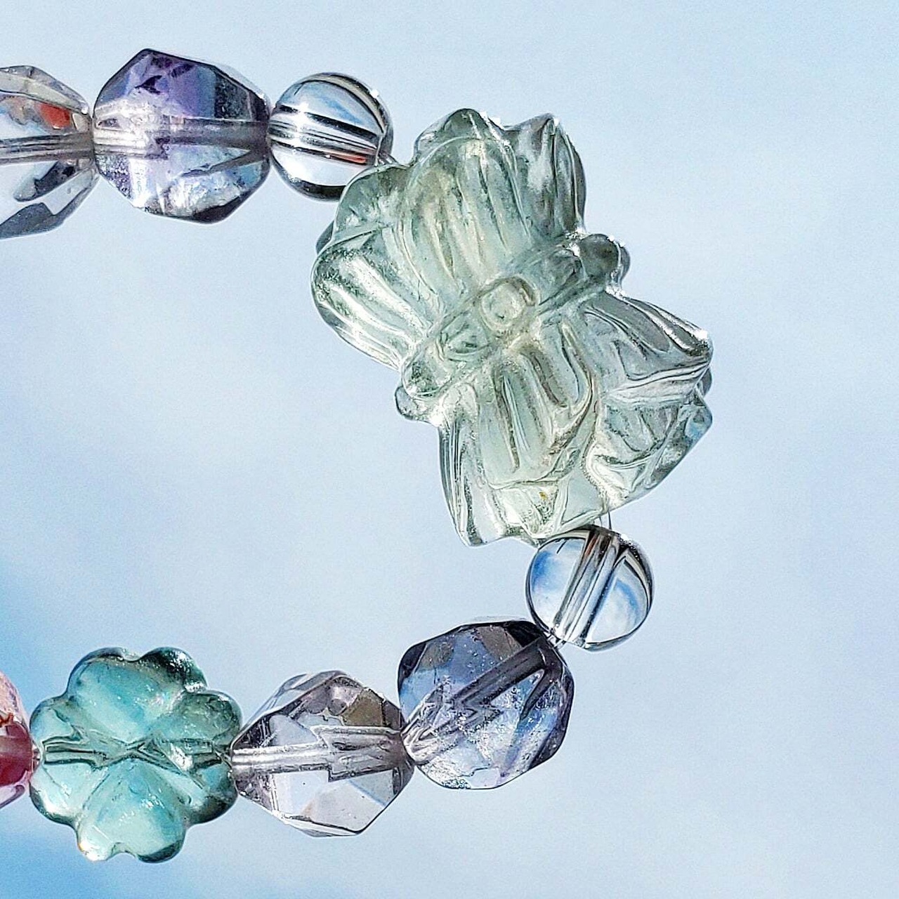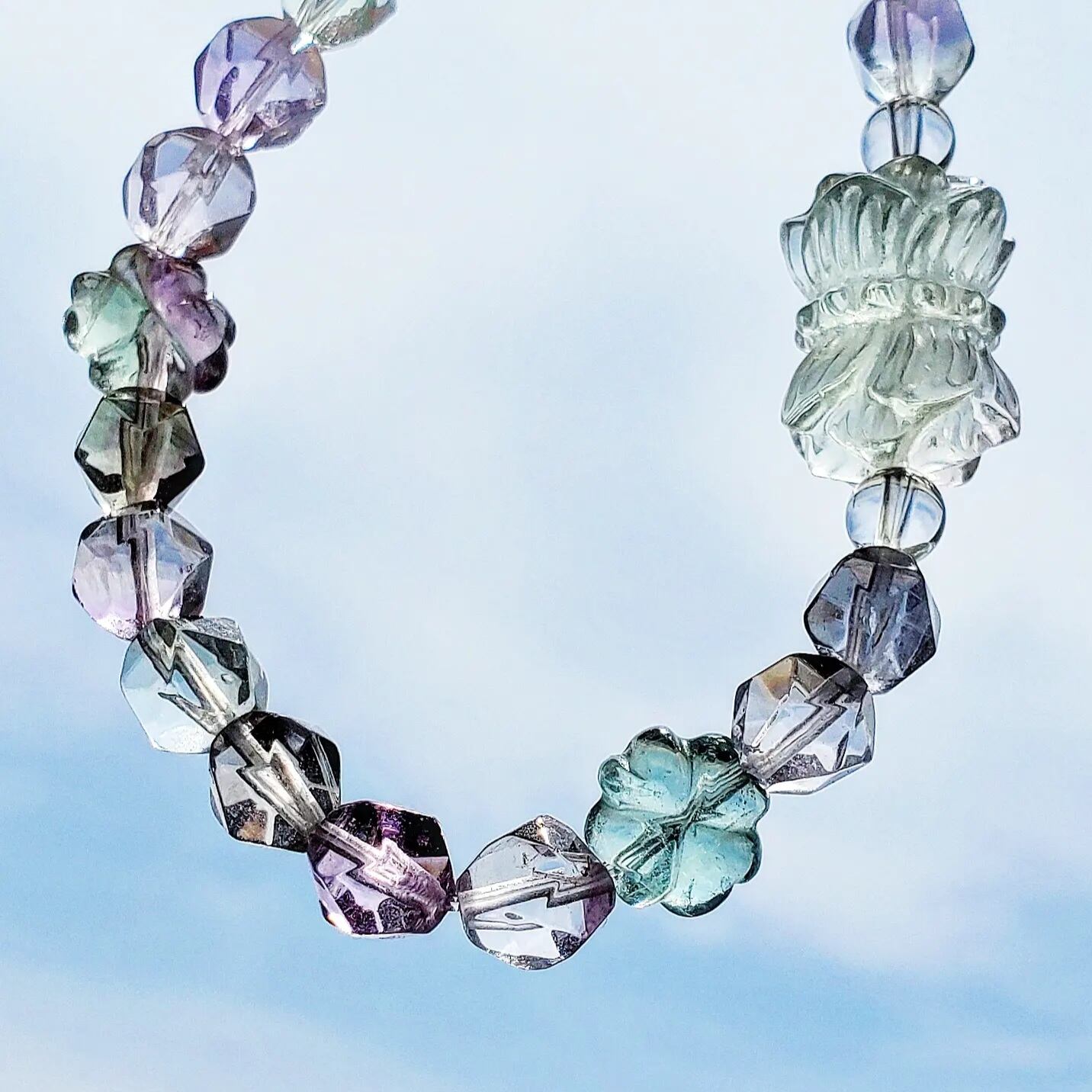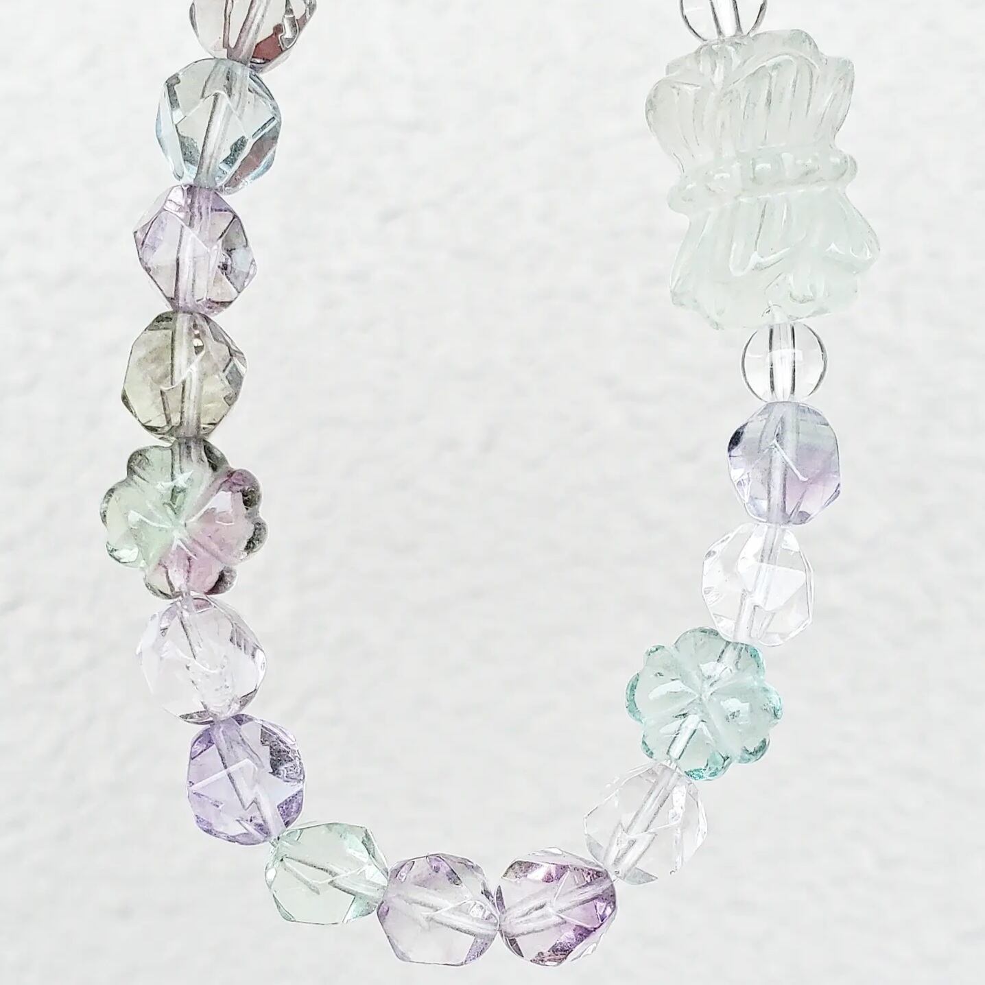 フローライト ( 双頭蓮彫り & 四つ葉のクローバー型 & スターカット & 丸珠 )