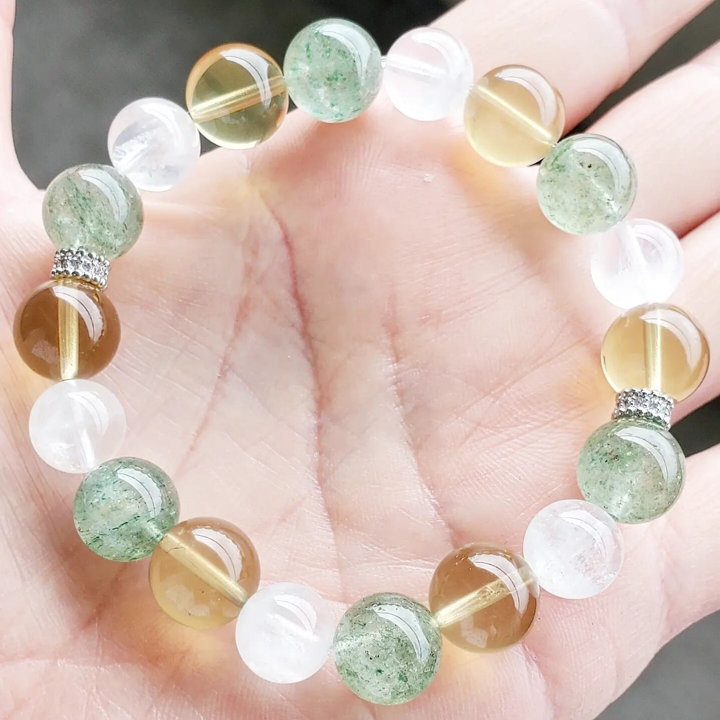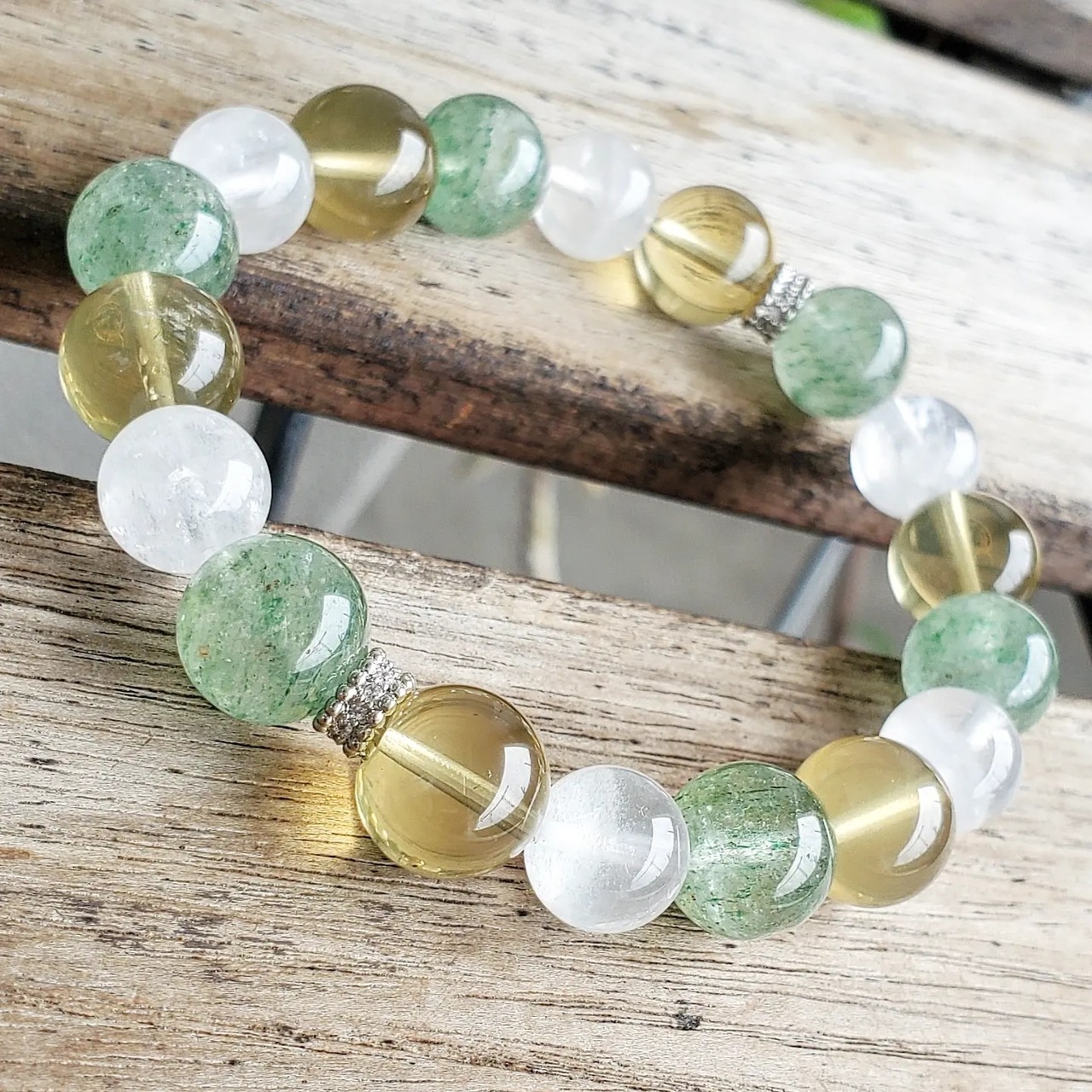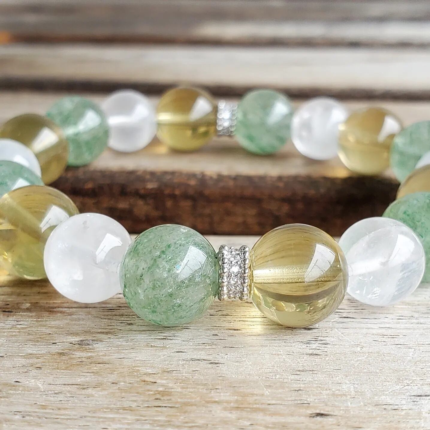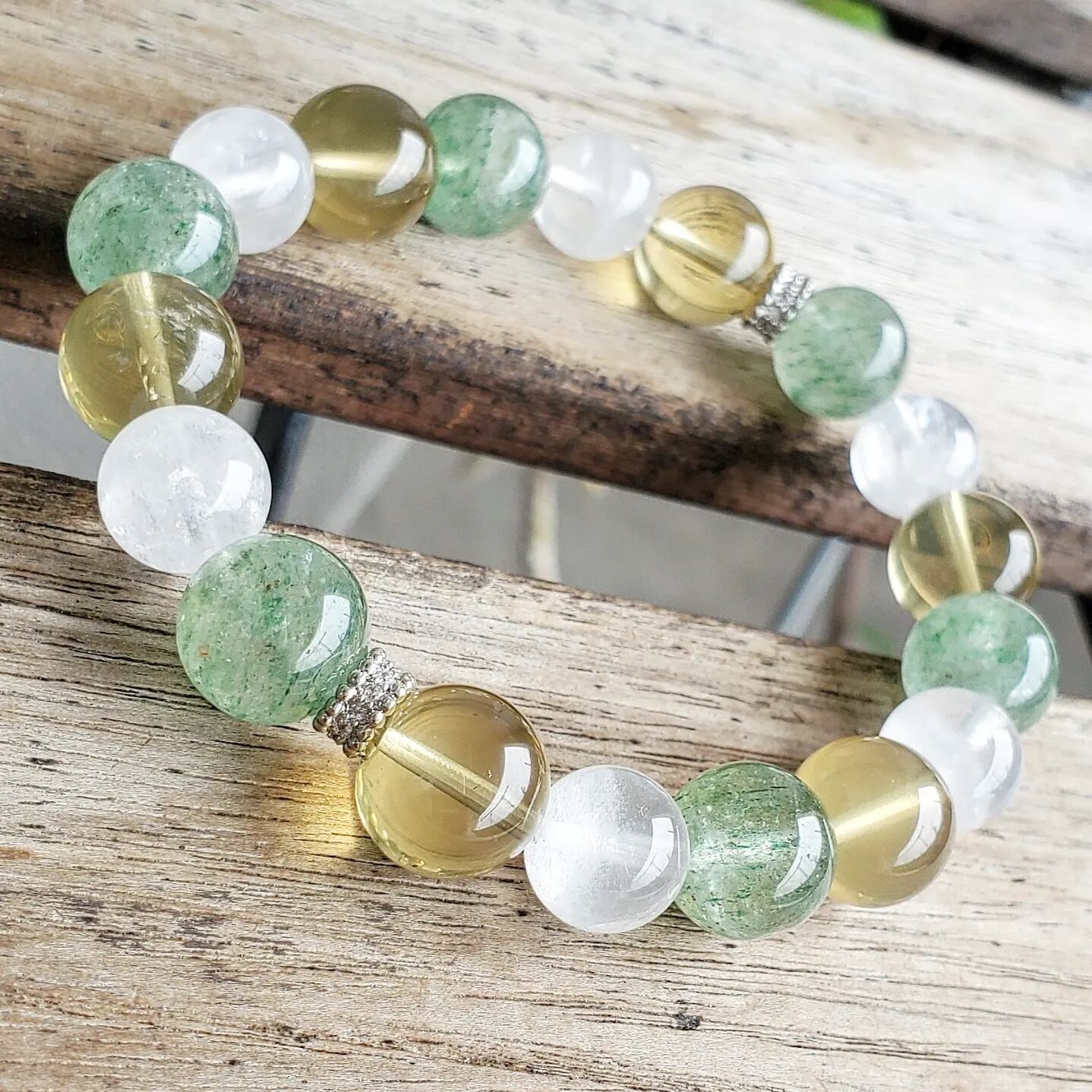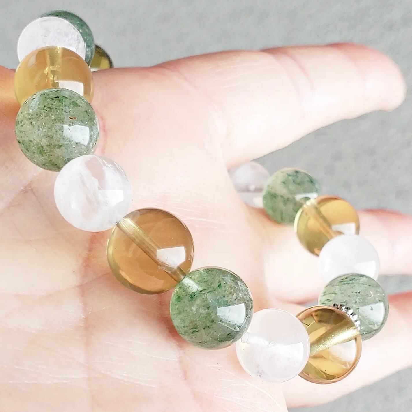 グリーンエピドート イン クォーツ & スモーキーレモンクォーツ & ホワイトファントムクォーツ