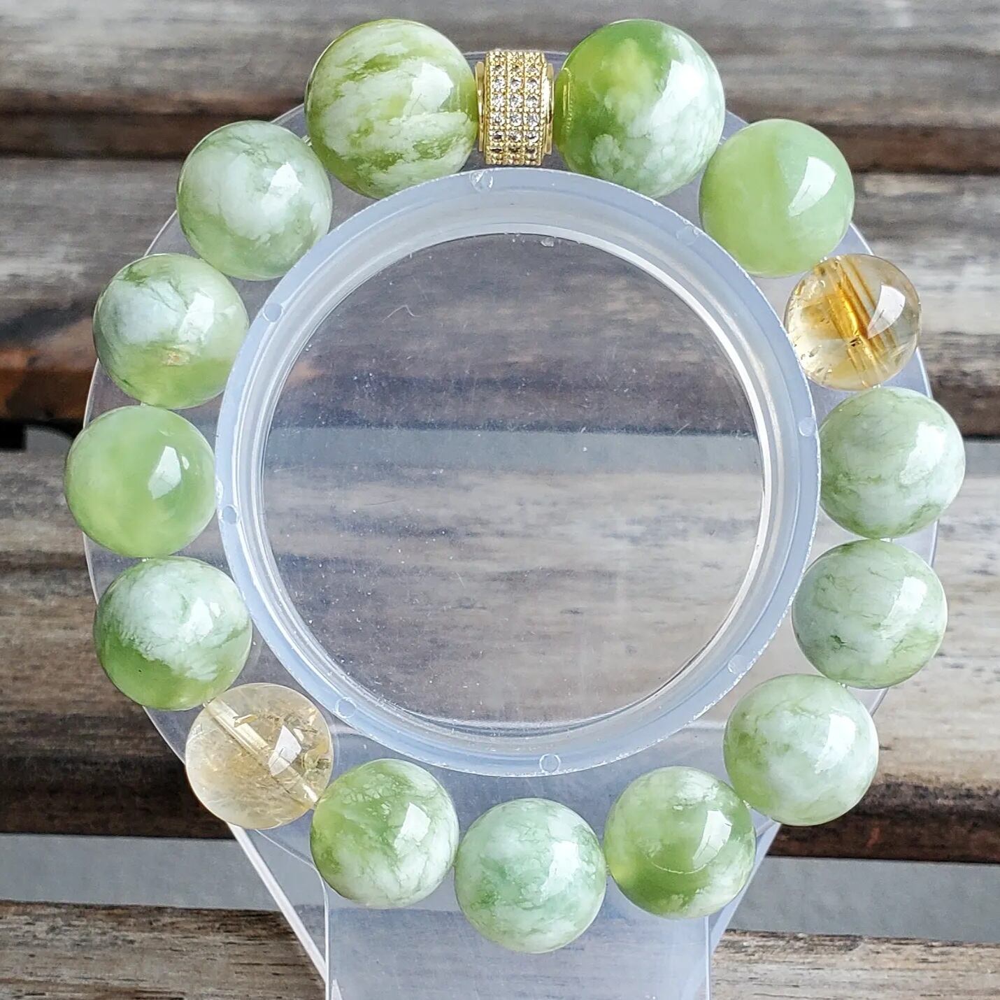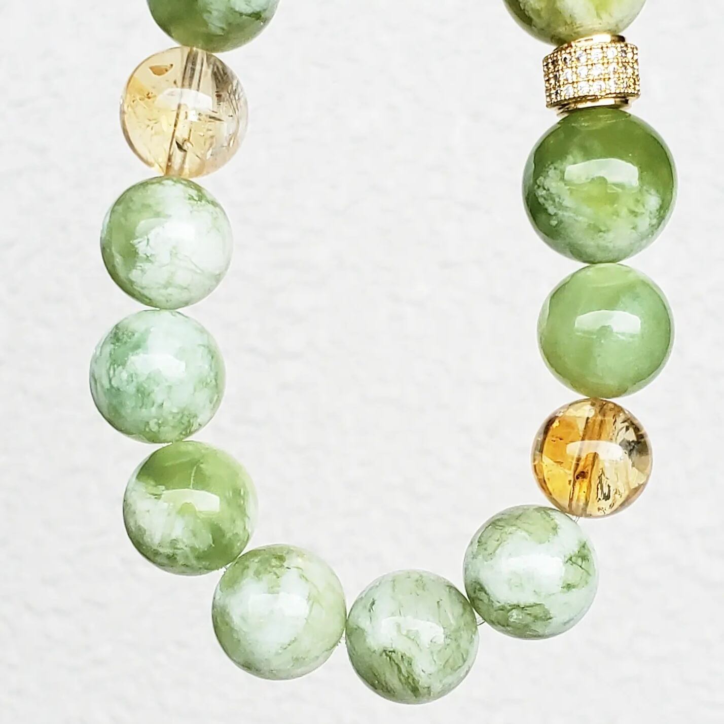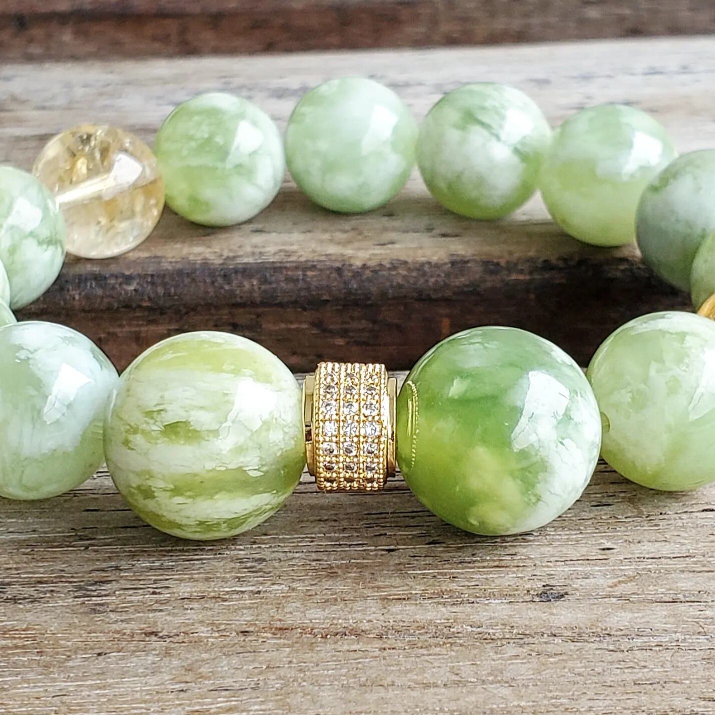 〈大玉〉ライムグリーンカラーサーペンティン & シトリン