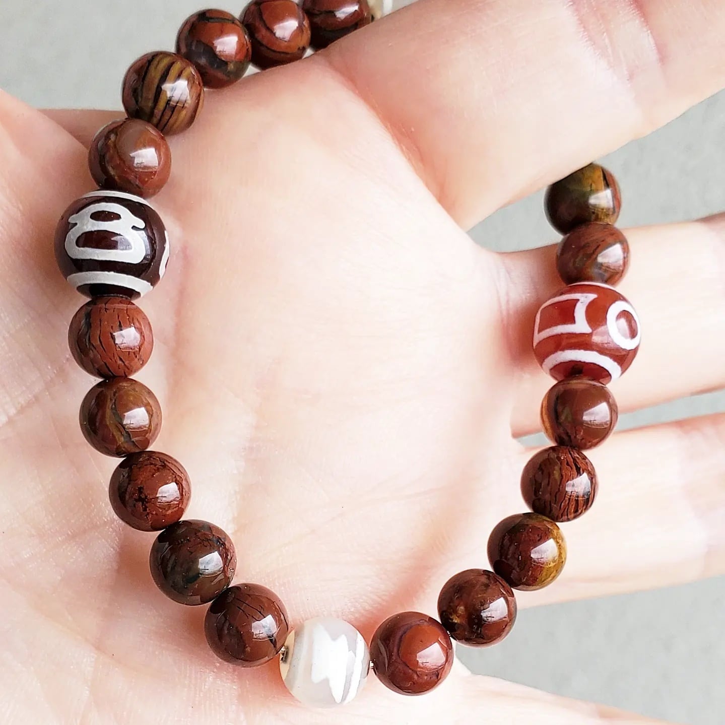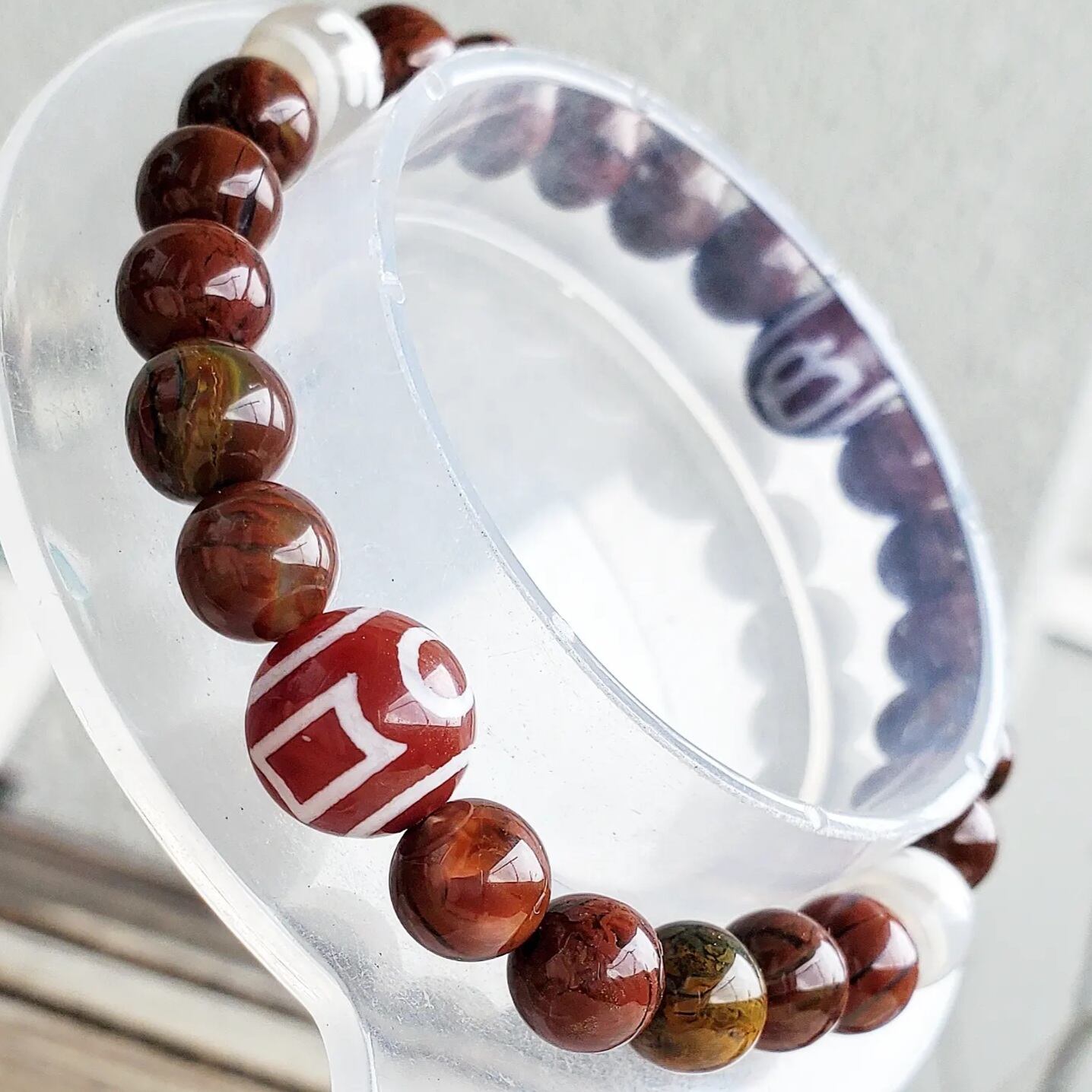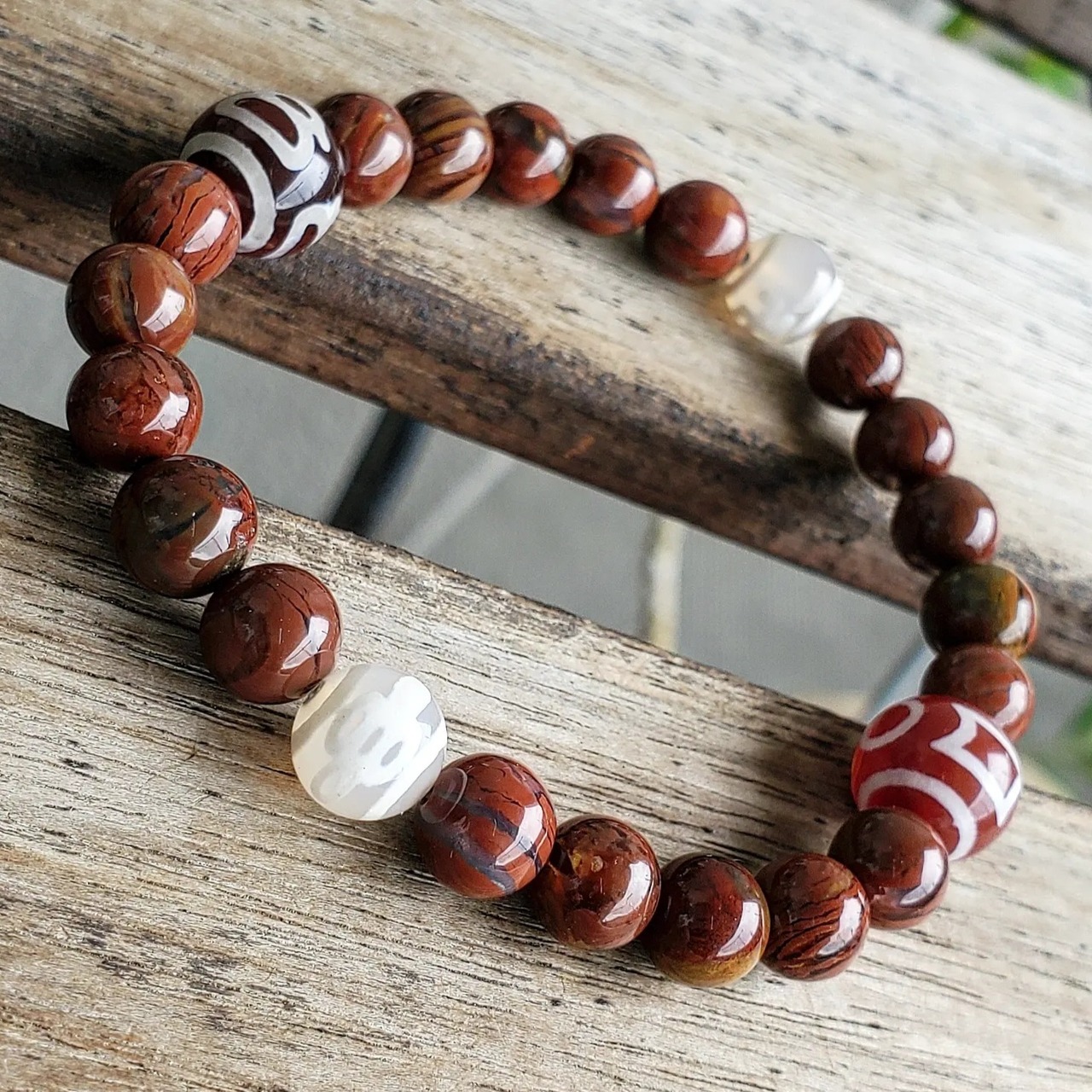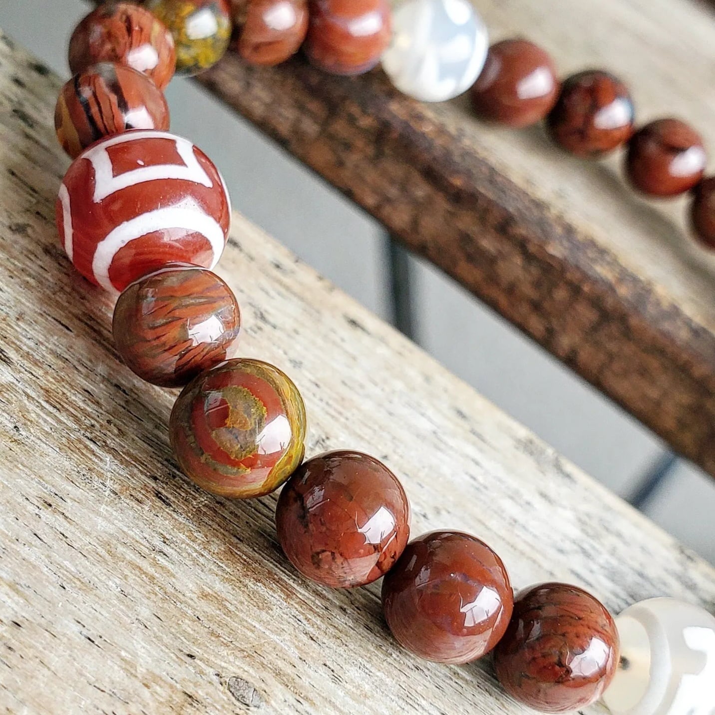 4種類の天珠(財神/天地/閃電五眼/万字) & アラシャンアゲート(阿拉善瑪瑙)