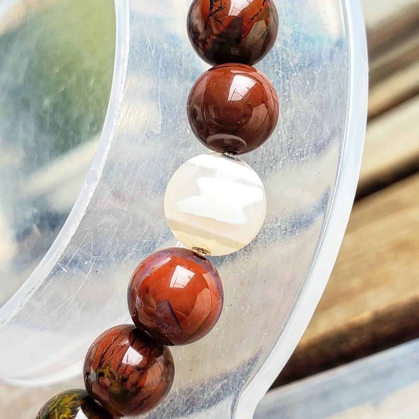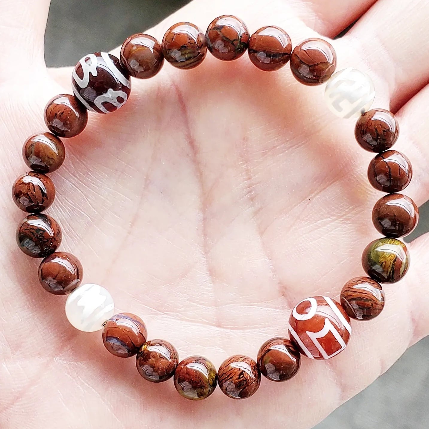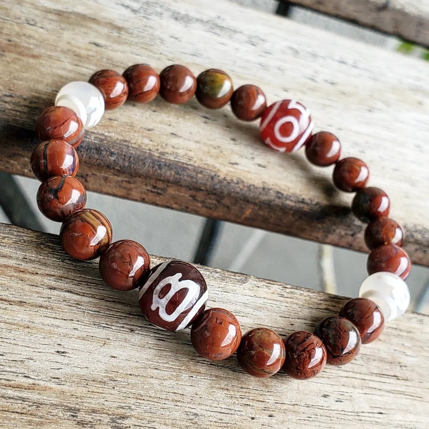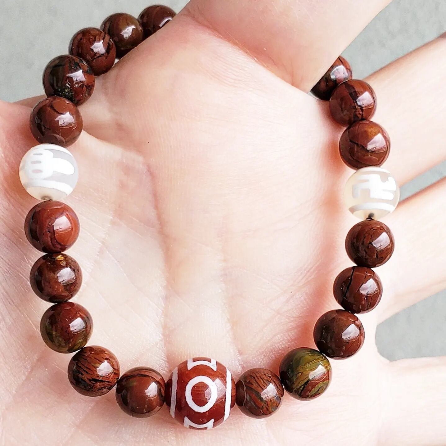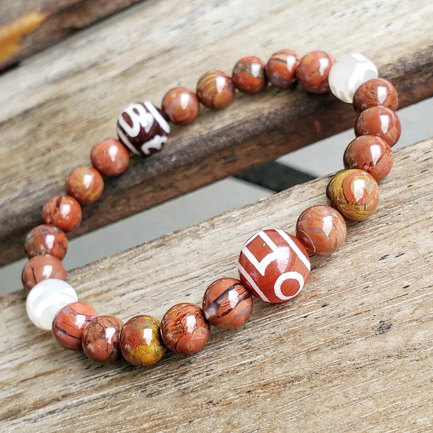 4種類の天珠(財神/天地/閃電五眼/万字) & アラシャンアゲート(阿拉善瑪瑙)