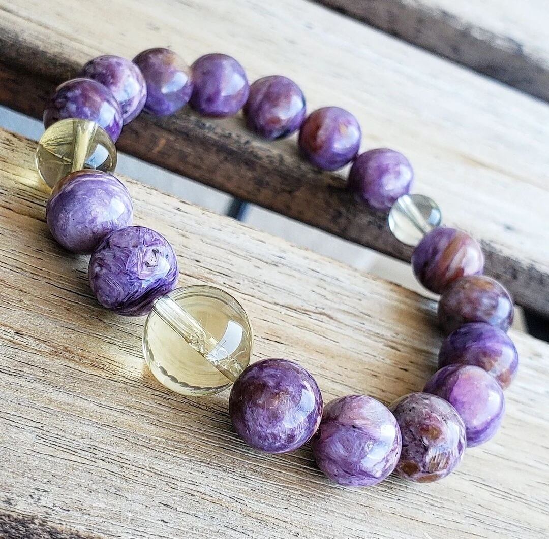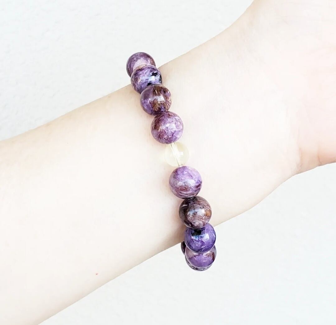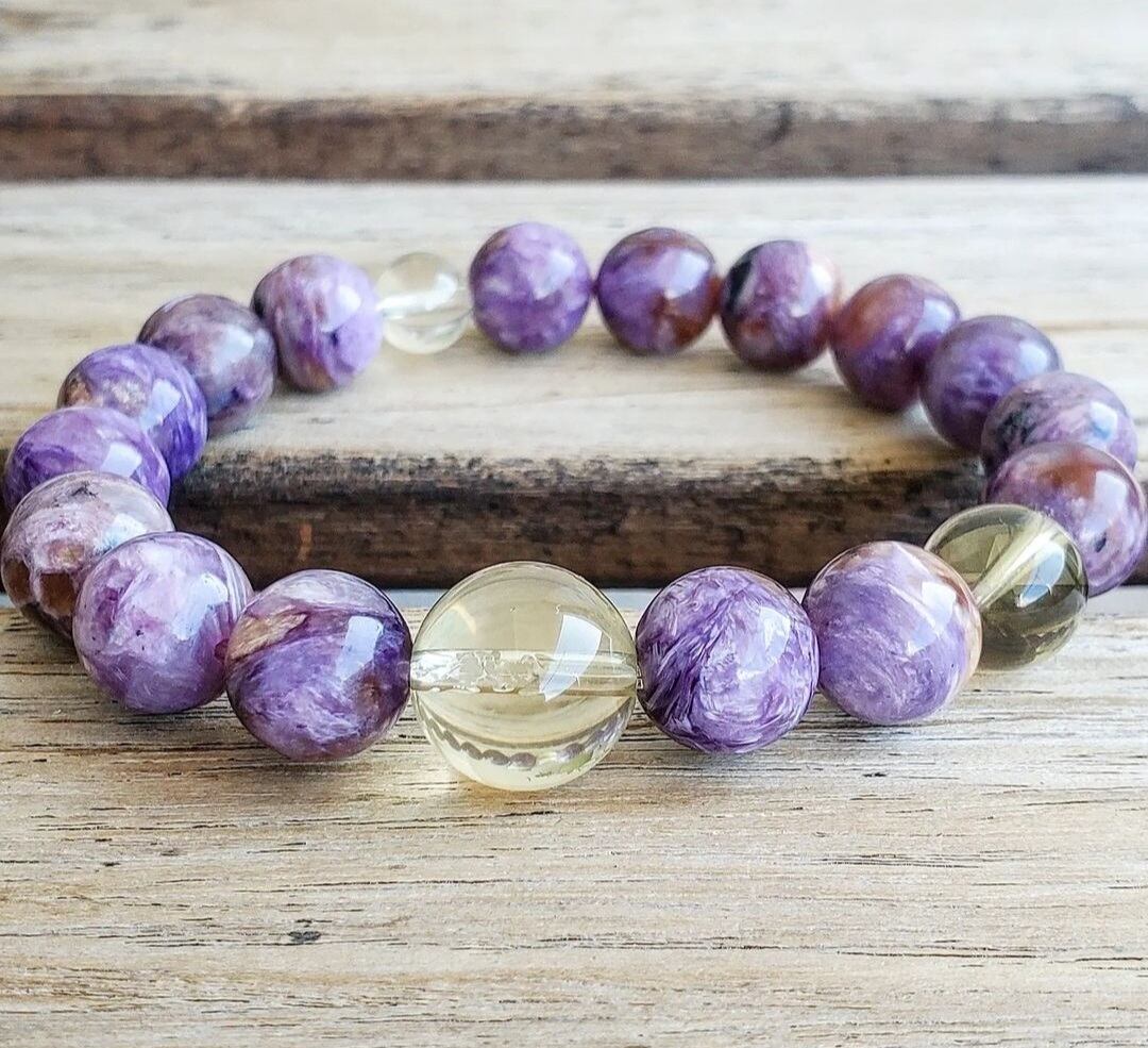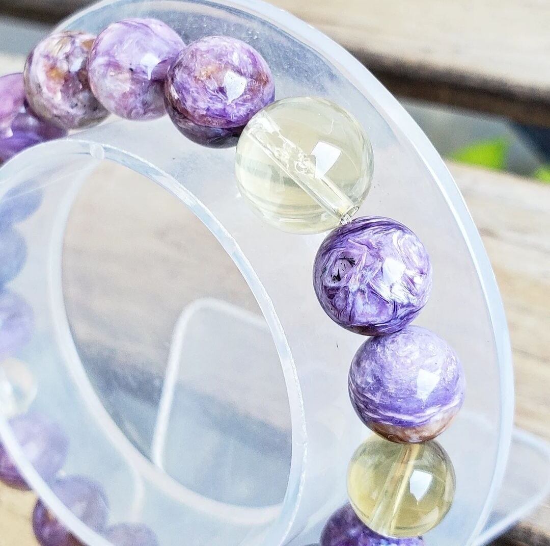 「変容の石」と呼ばれるチャロアイトは、高い波動を持ち、持ち主の不安や恐怖心を克服するのをサポート、癒しと浄化に長けた石といわれています