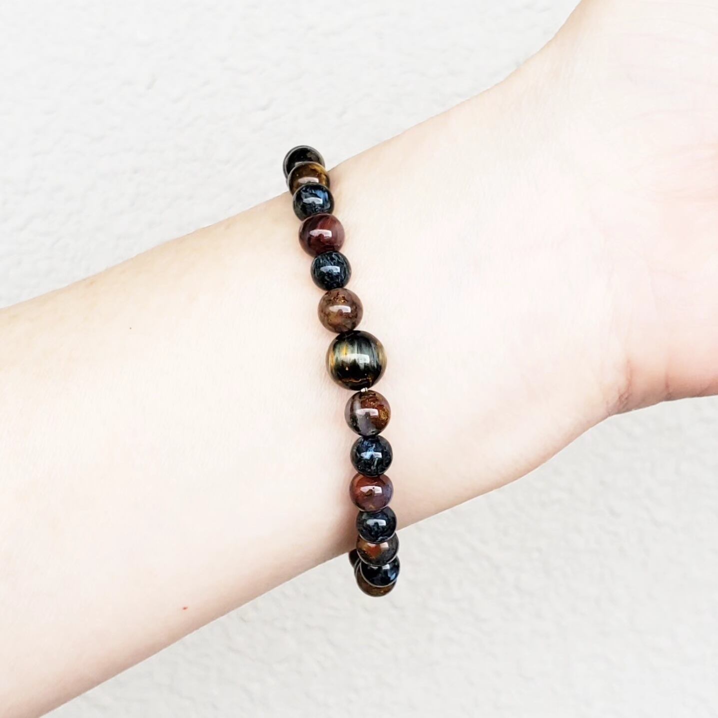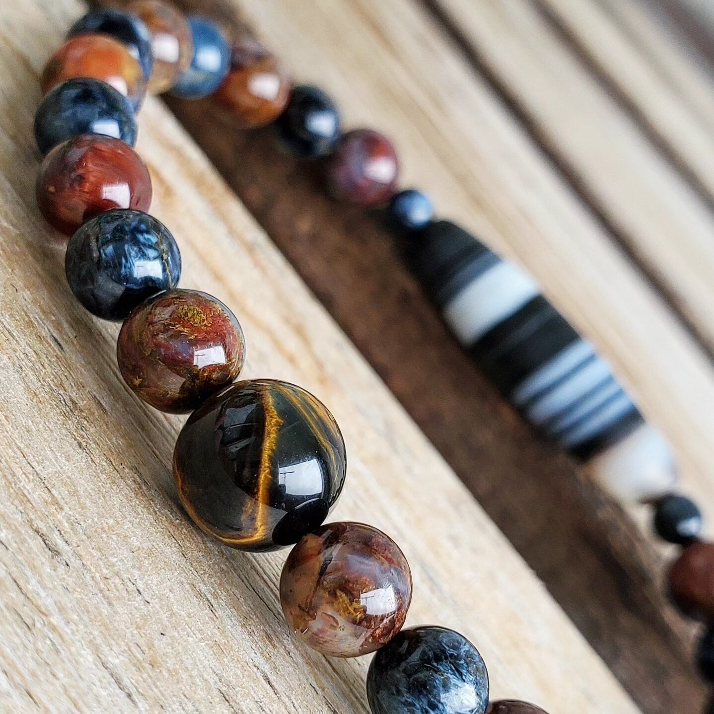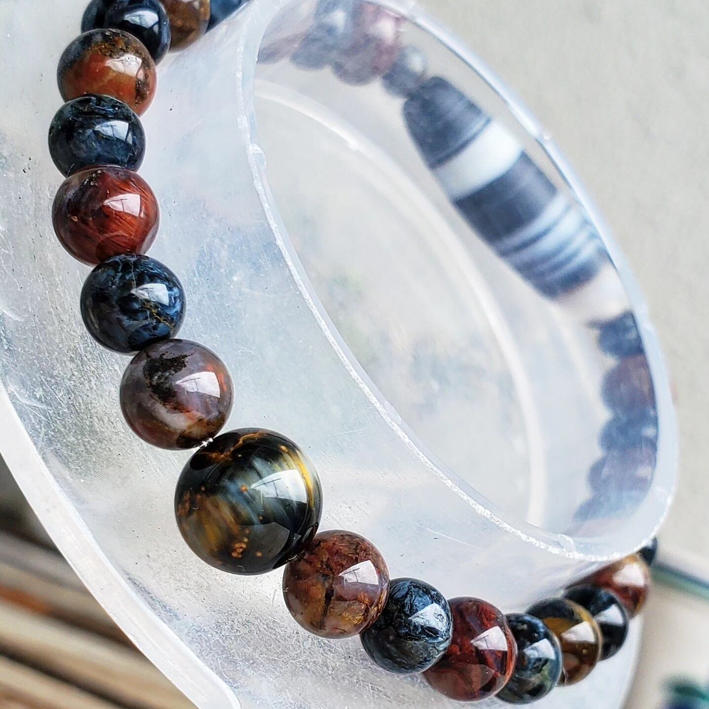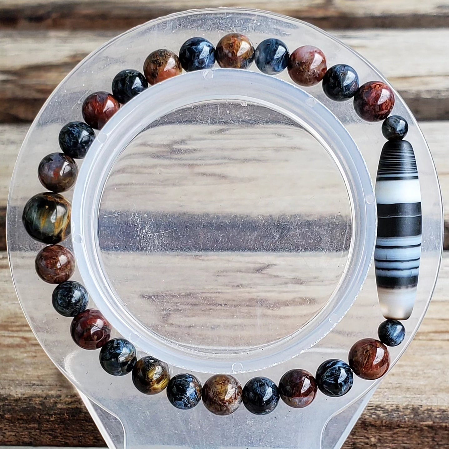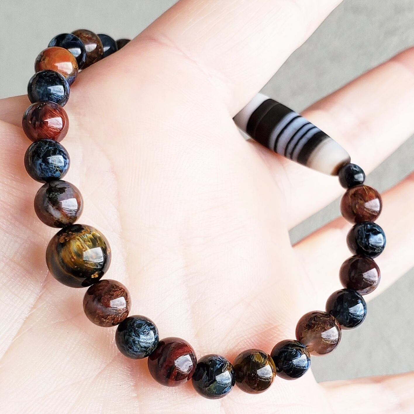 地殻変動などによって砕けたタイガーアイやホークスアイに、長い年月をかけ石英が染み込み再び固まった鉱物、ピーターサイト