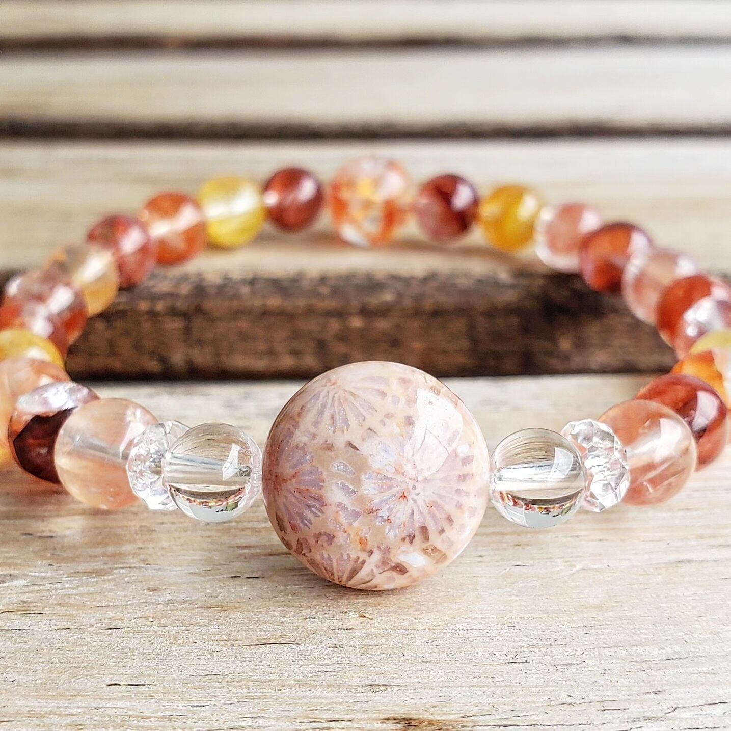 フォッシルコーラル & 天然オーロラクォーツ(錦鯉水晶) & 水晶