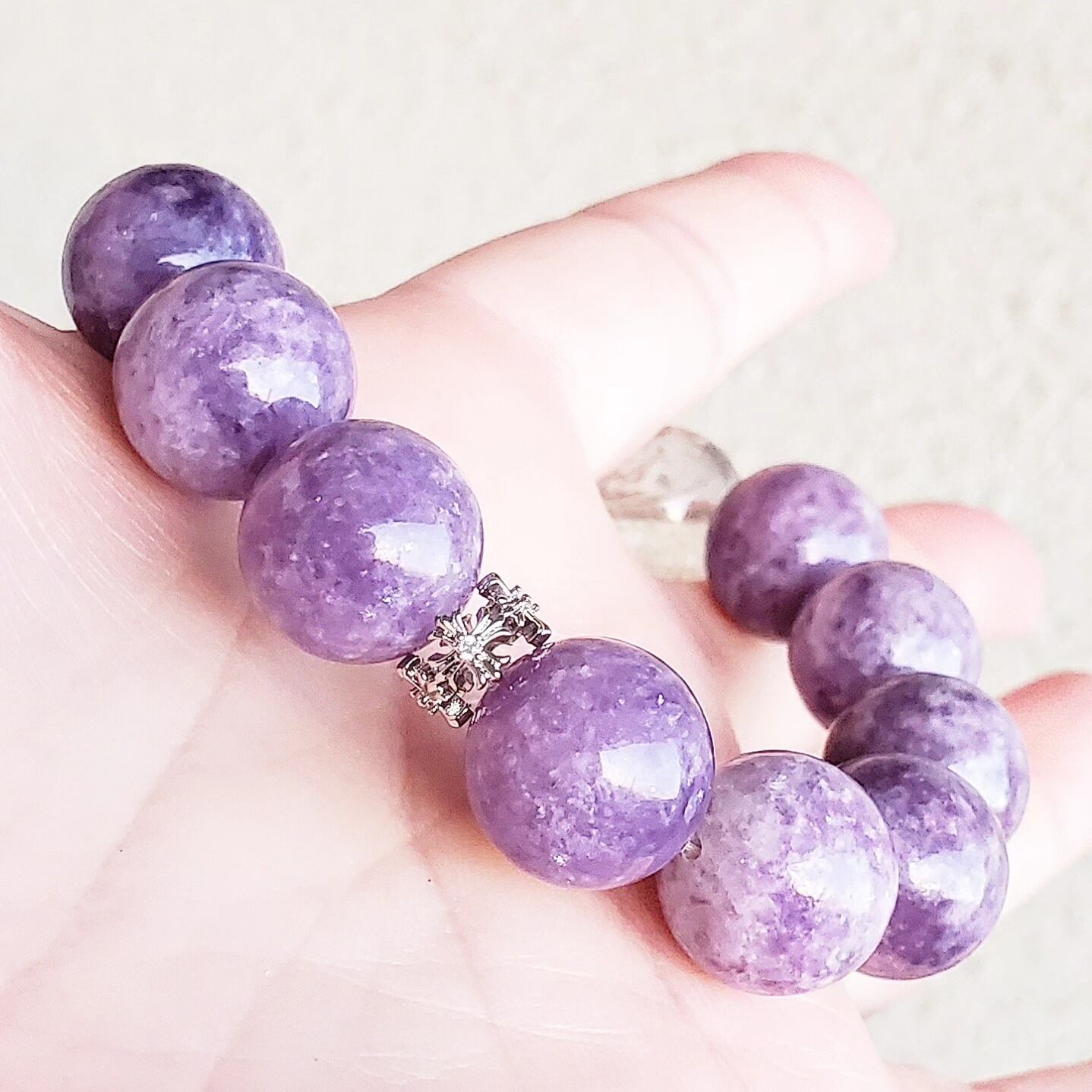フェルドスパー(長石)にレピドライト(リチア雲母)とマイカ(雲母)が共生した、淡いパープルカラーが魅力なフェルドスパーマイカ