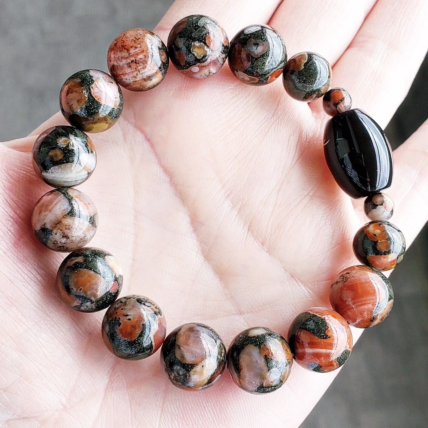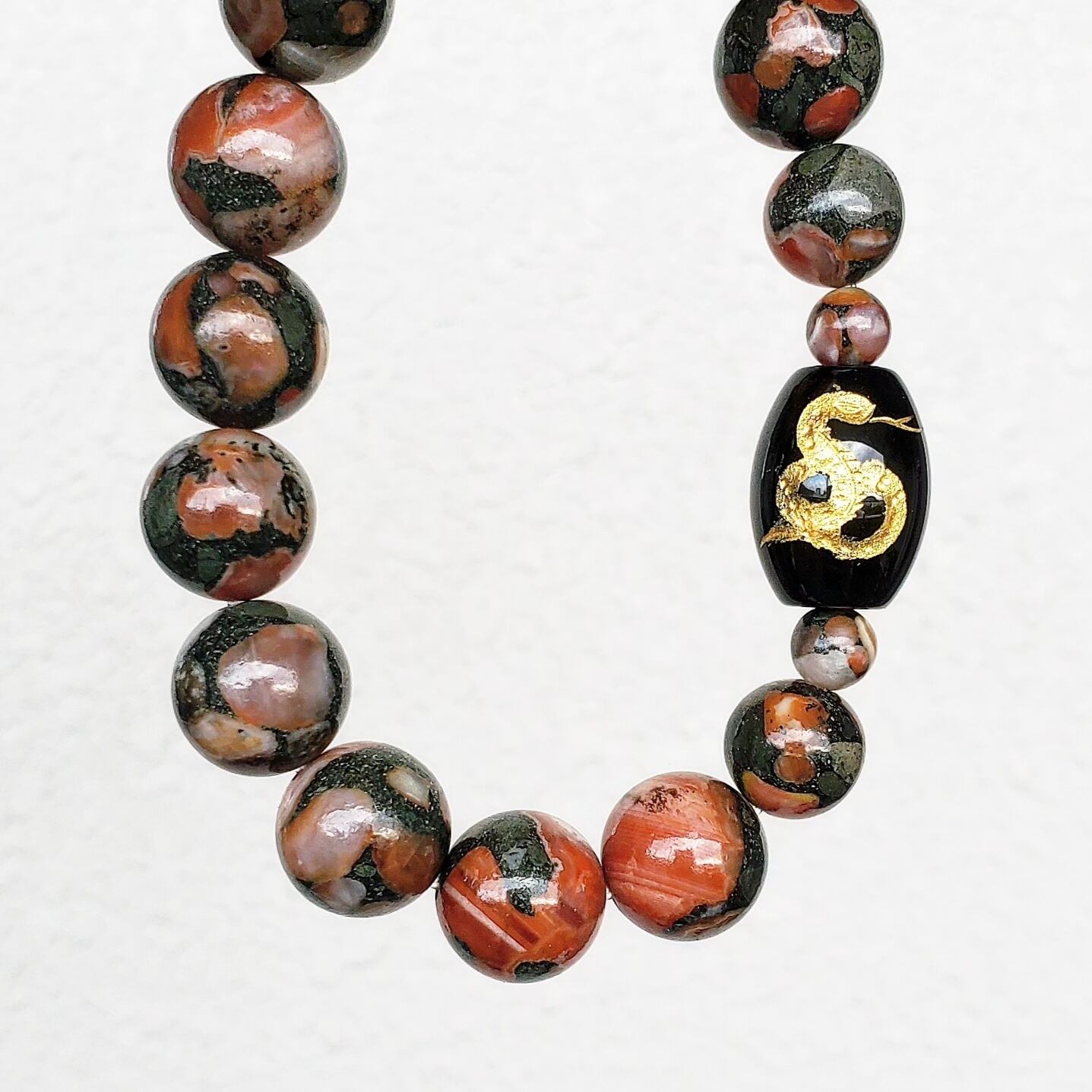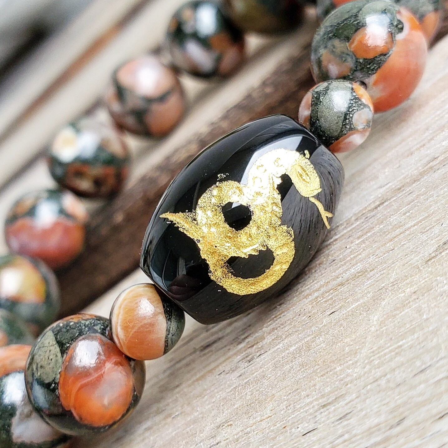 〈大玉〉オニキス(蛇・金色彫り/樽型) × アミグダロイダルアゲート