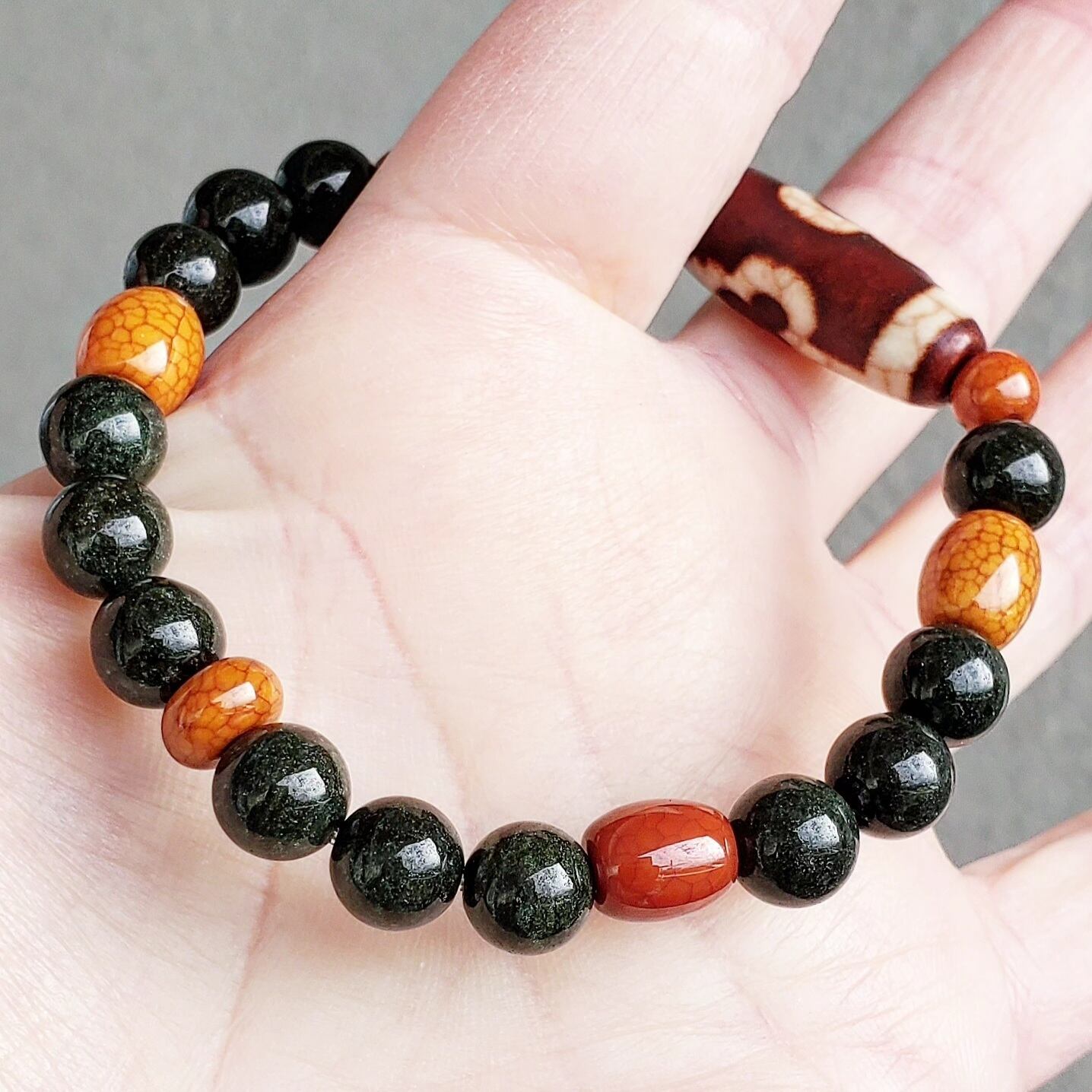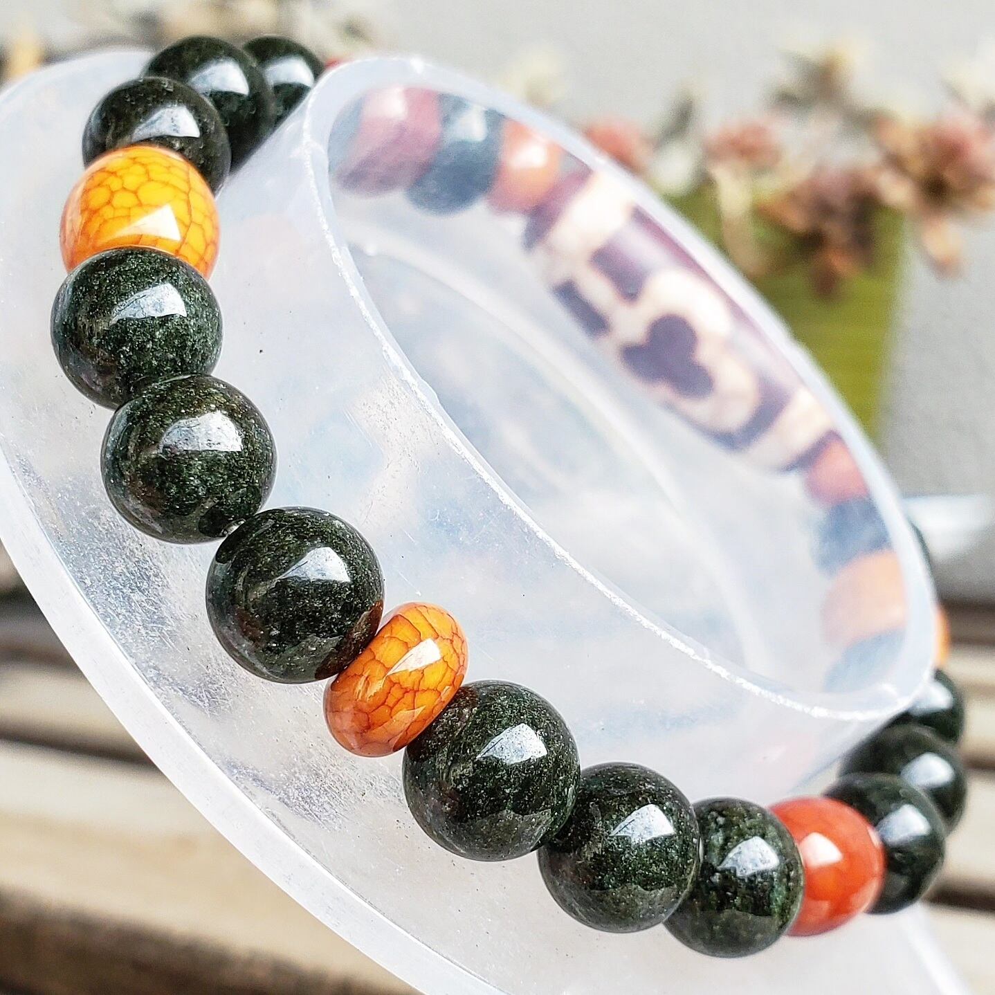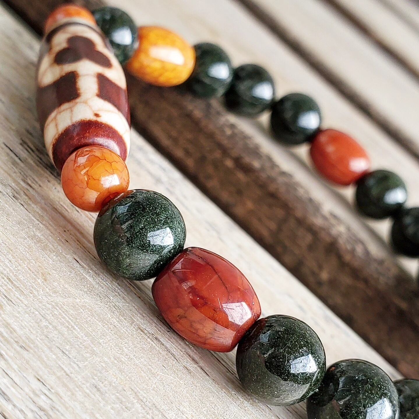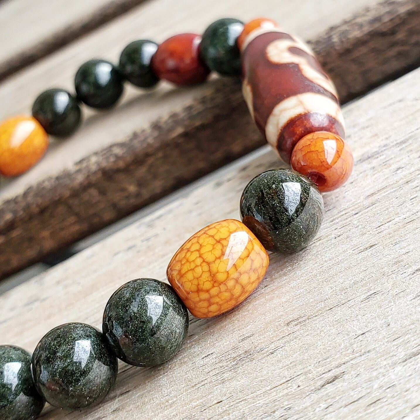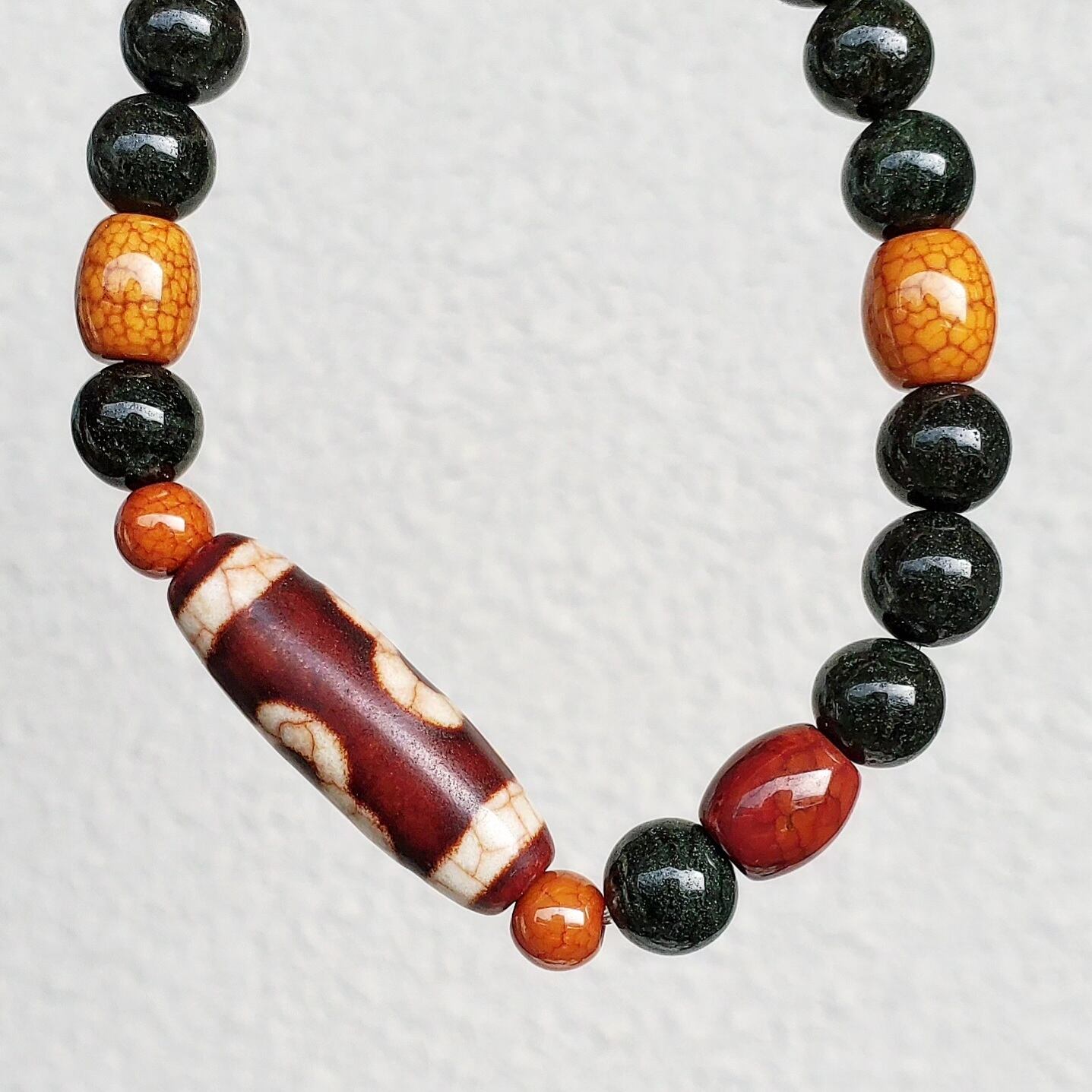 菩提(ぼだい)龍紋天珠[上肯社製/台湾] & 龍紋珠[上肯社製/台湾] & グリーンガーデンクォーツ