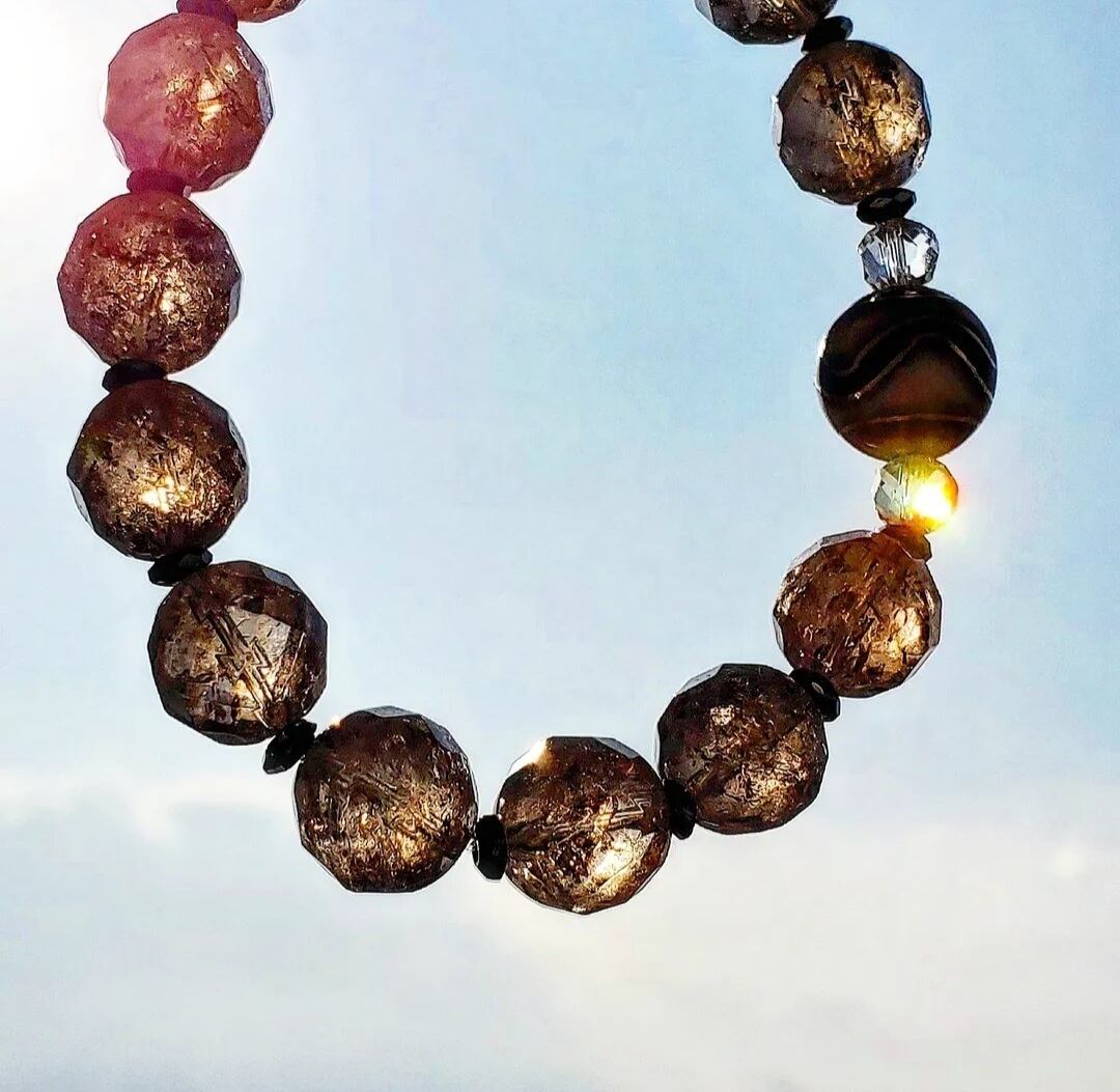アイリス エレスチャルスモーキークォーツ とは、内部にクラックや歪みがあり、その部分が光を反射する際にキラキラ虹色の輝きを放つエレスチャルスモーキークォーツ のことです